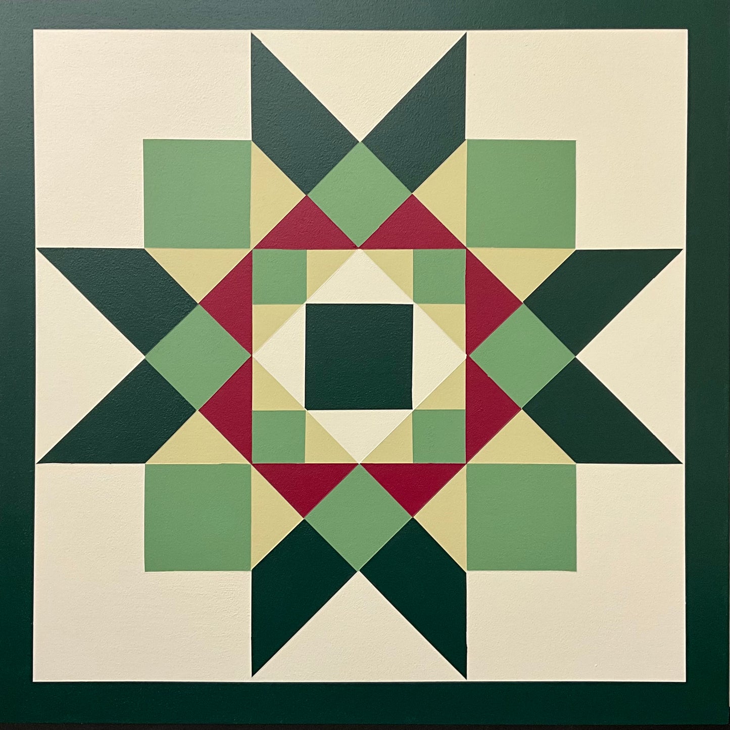 Barn Quilt Green/Magenta Geometric Pattern 2' x 2'