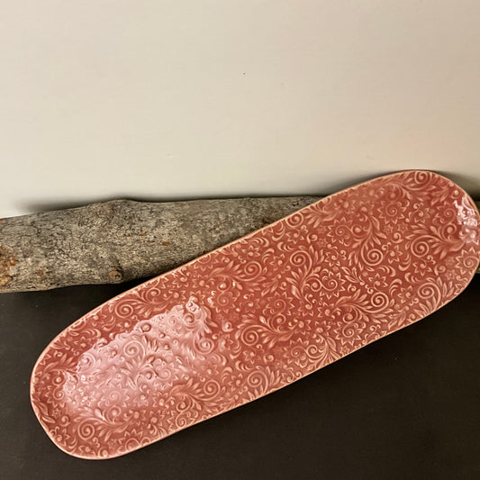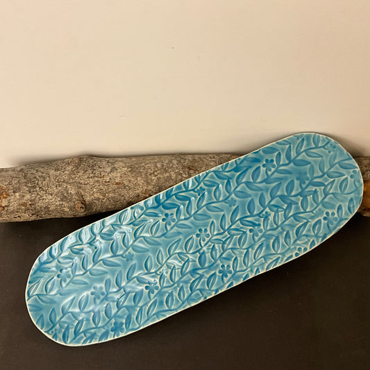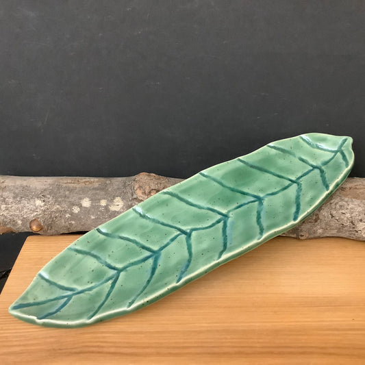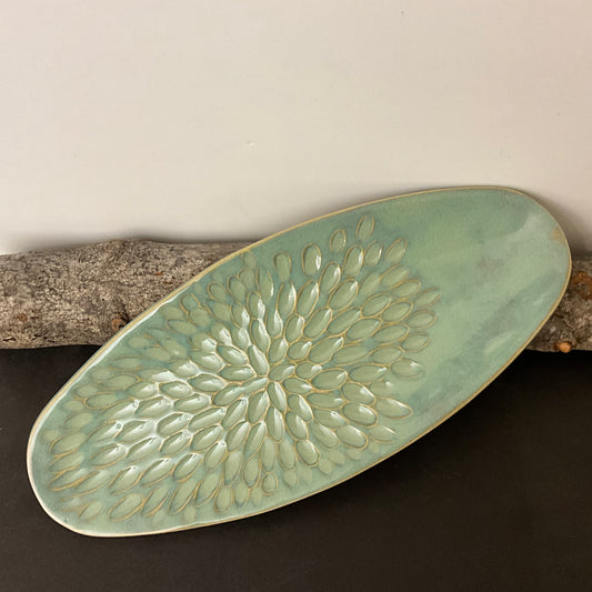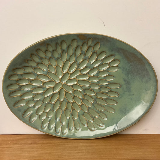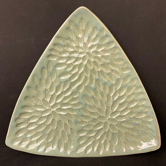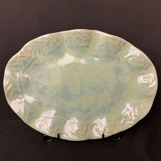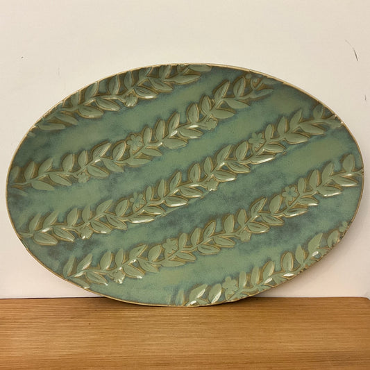 Large Green Christmas Plate Incised Tree Dark Evergreen