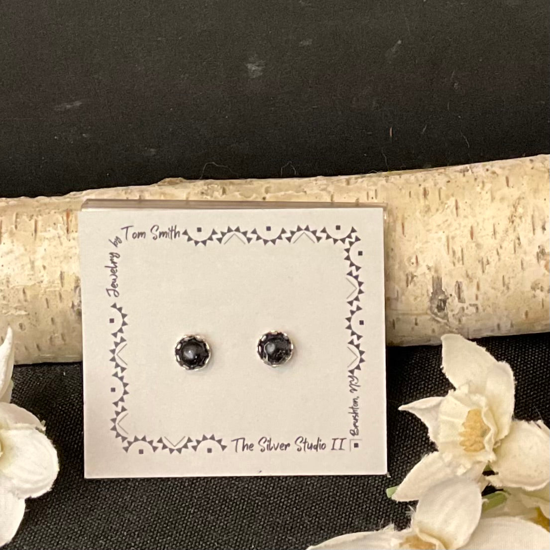 5mm Silver Post Earrings Blue Goldstone
