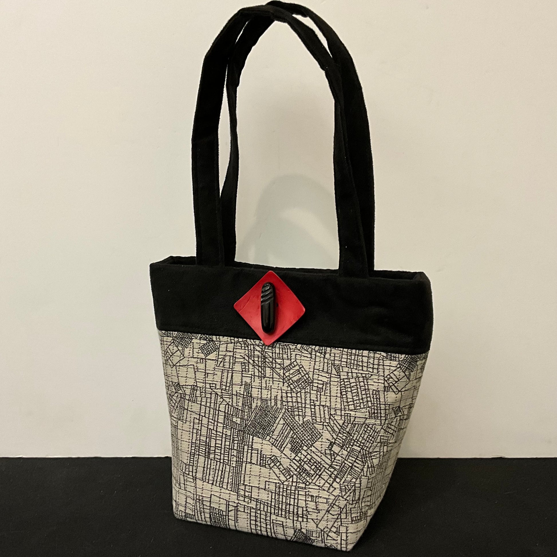 Bag Black & White Crossroads Fabric with Black Microsuede Handles