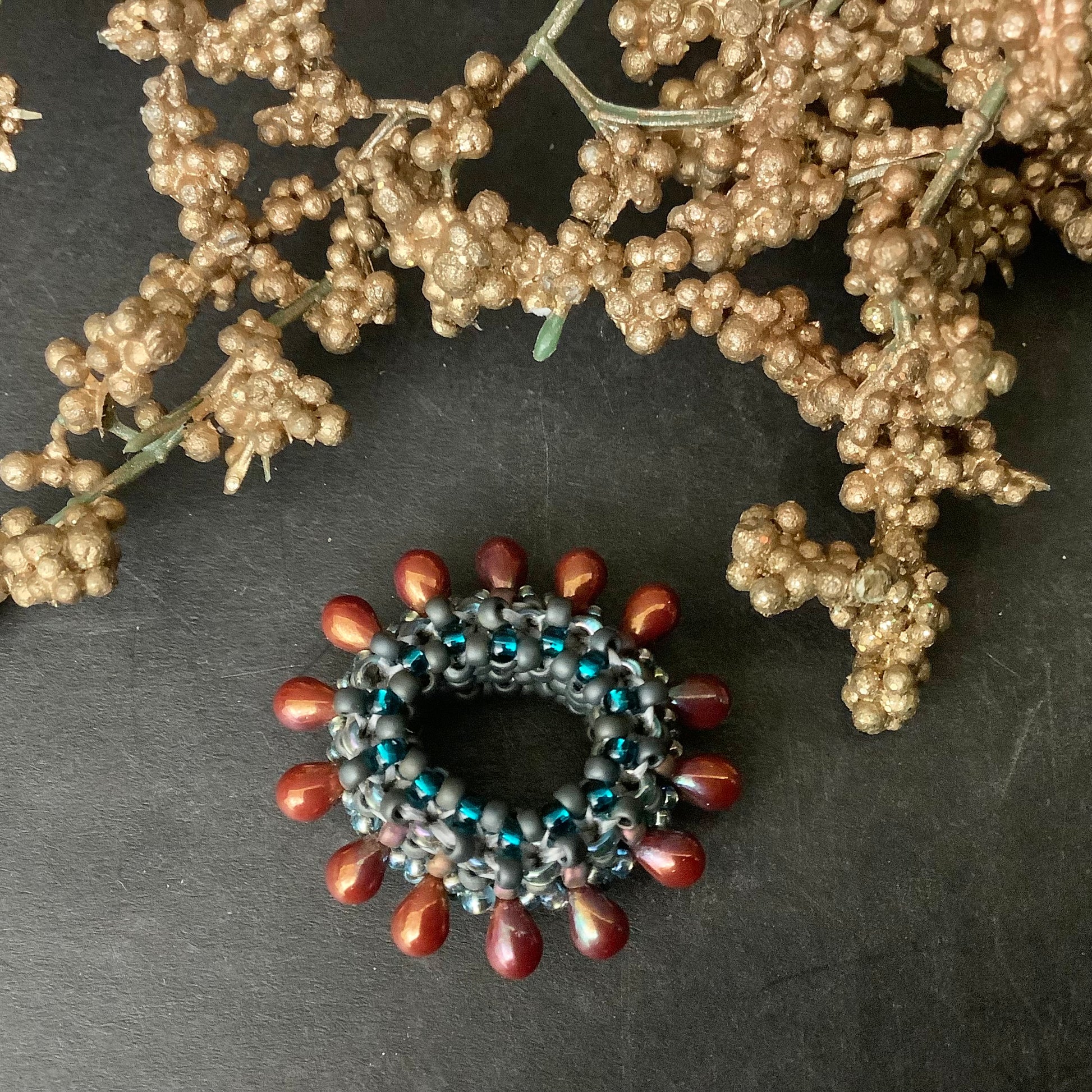 Beaded Bead Teal, Gray, Brown Droplets
