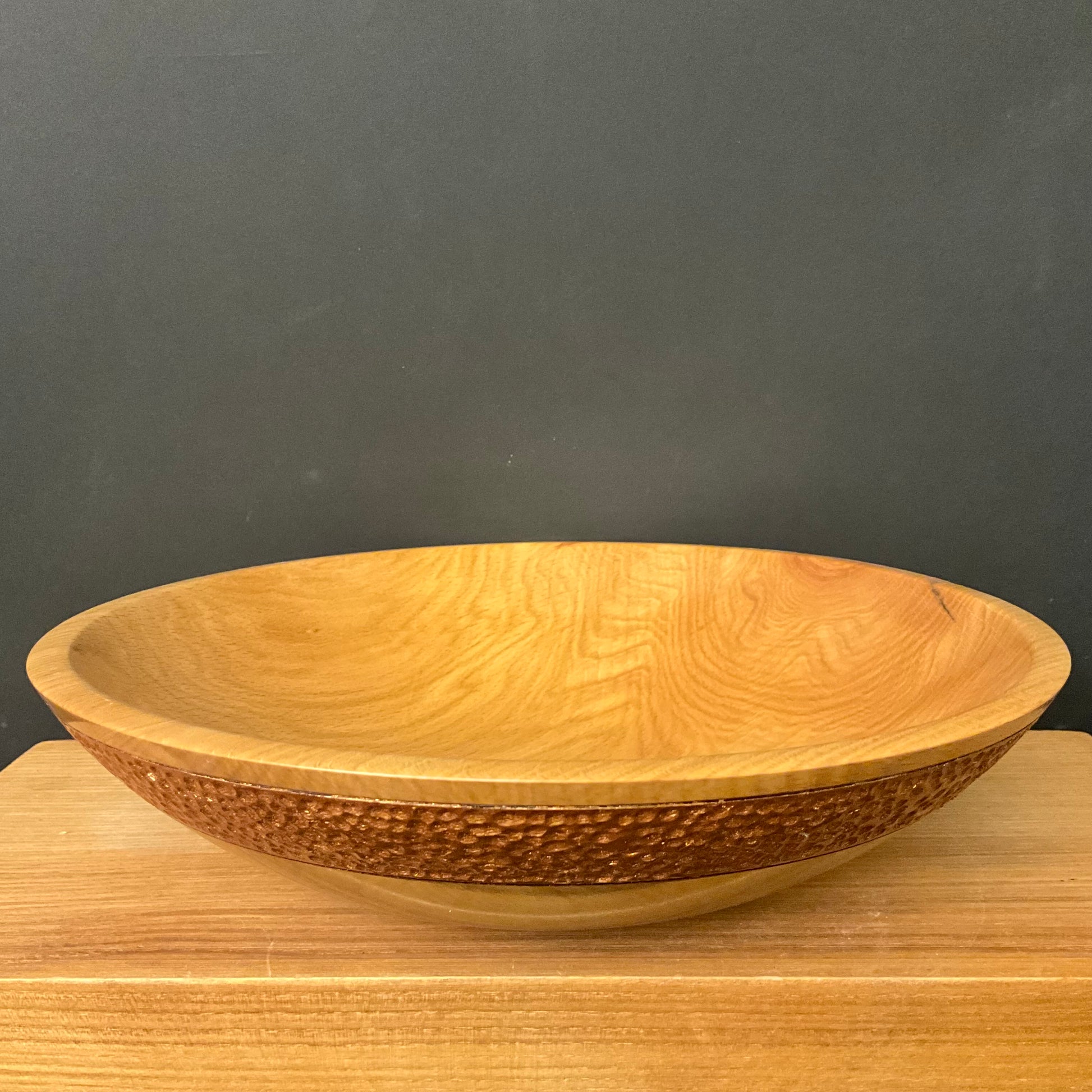 Large Beech wood bowl with textured gold rim
