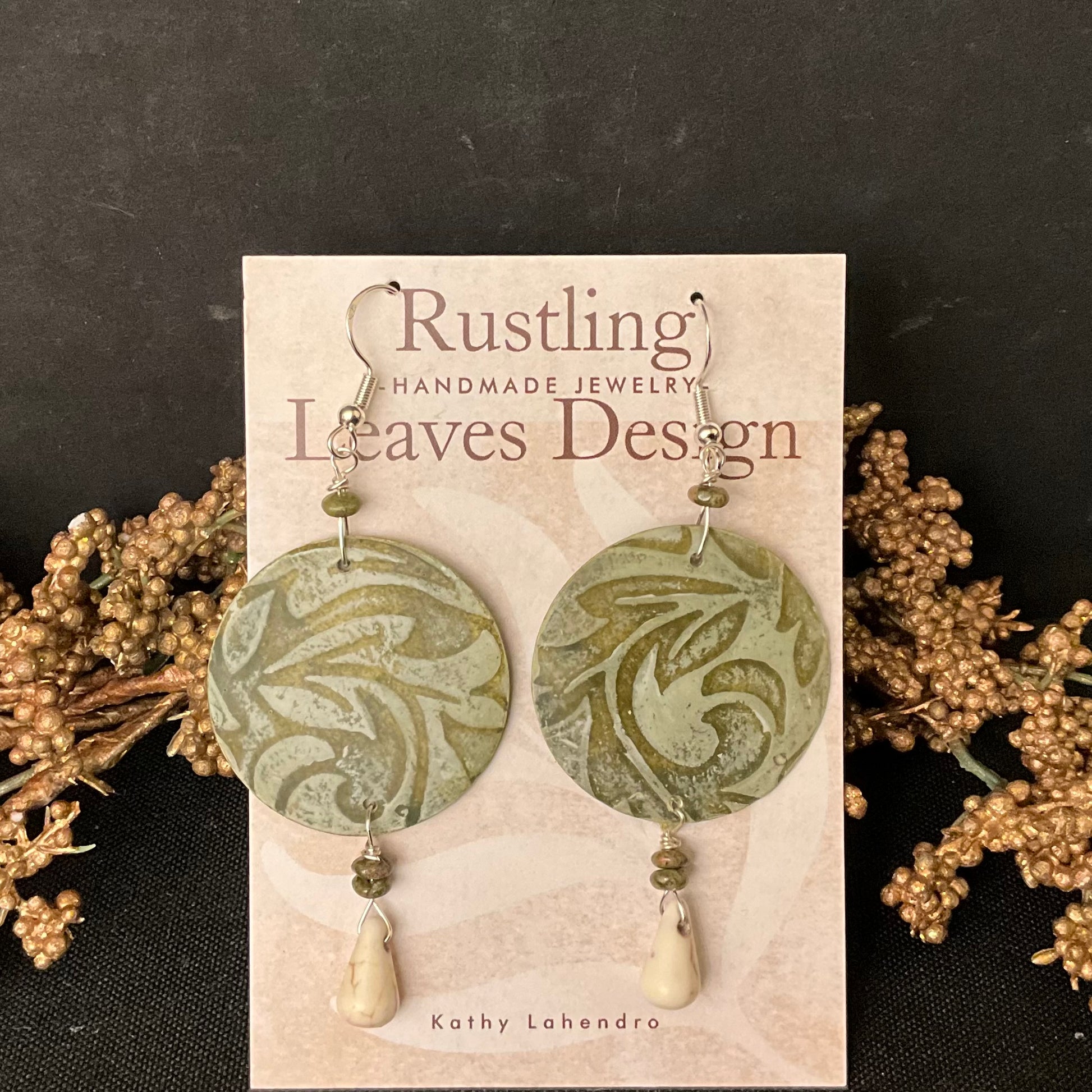 Olive Floral Disc with Bead Earrings