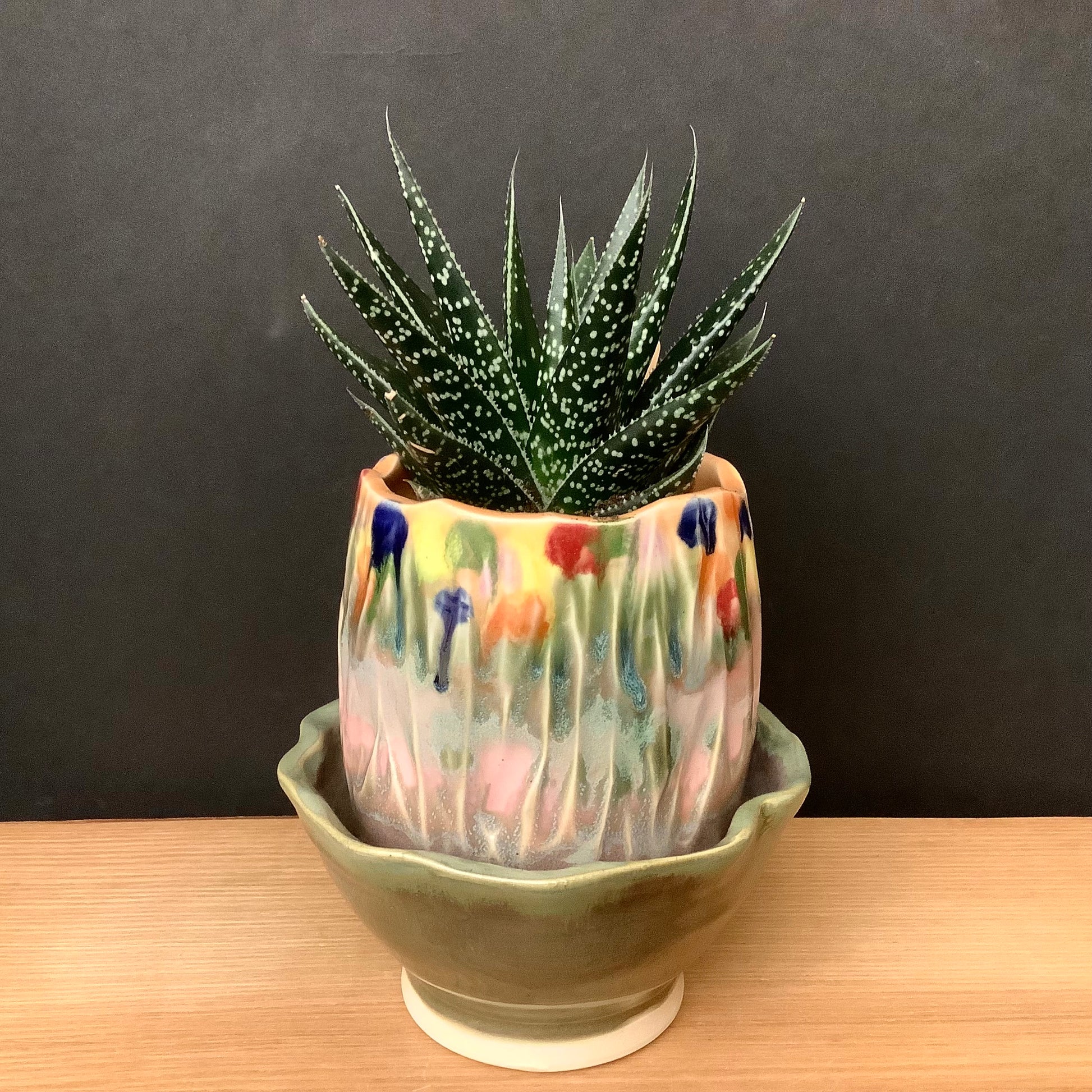 Ceramic Tulip Planter with Succulent Plant