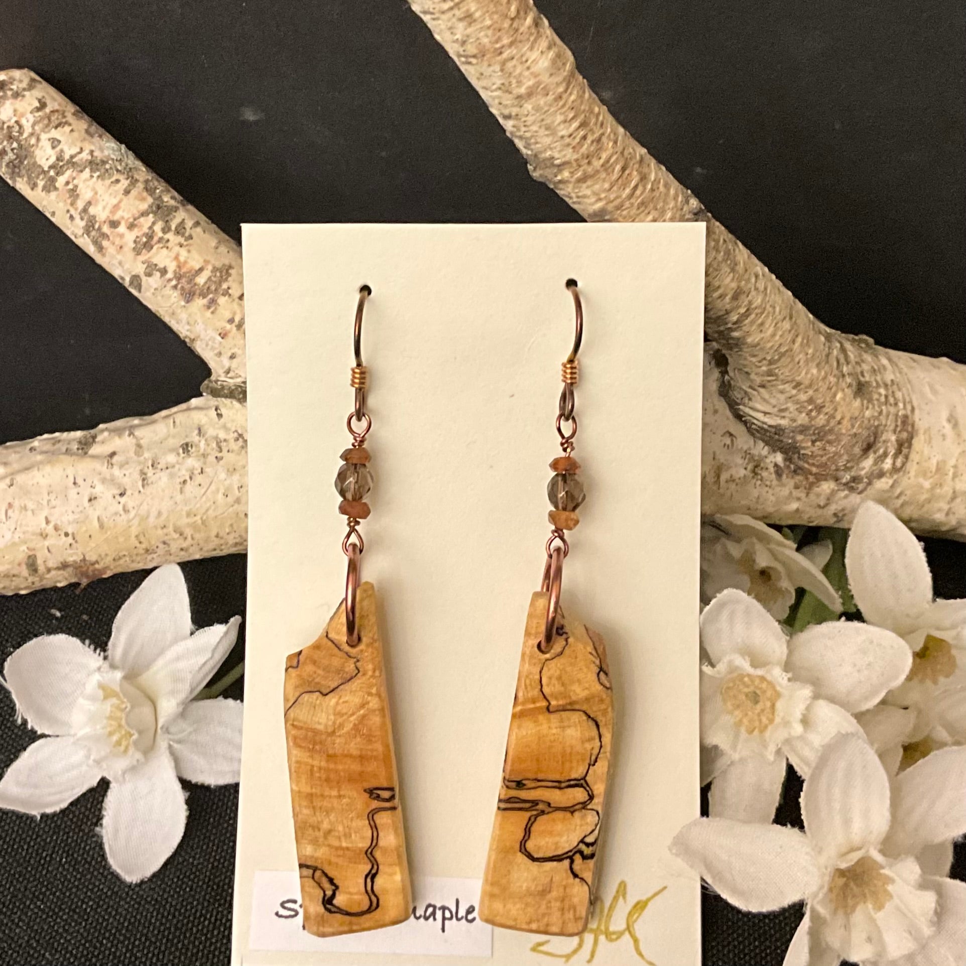 Spalted Maple Earrings w/ Smoky Quartz & Hessionite Garnet #286