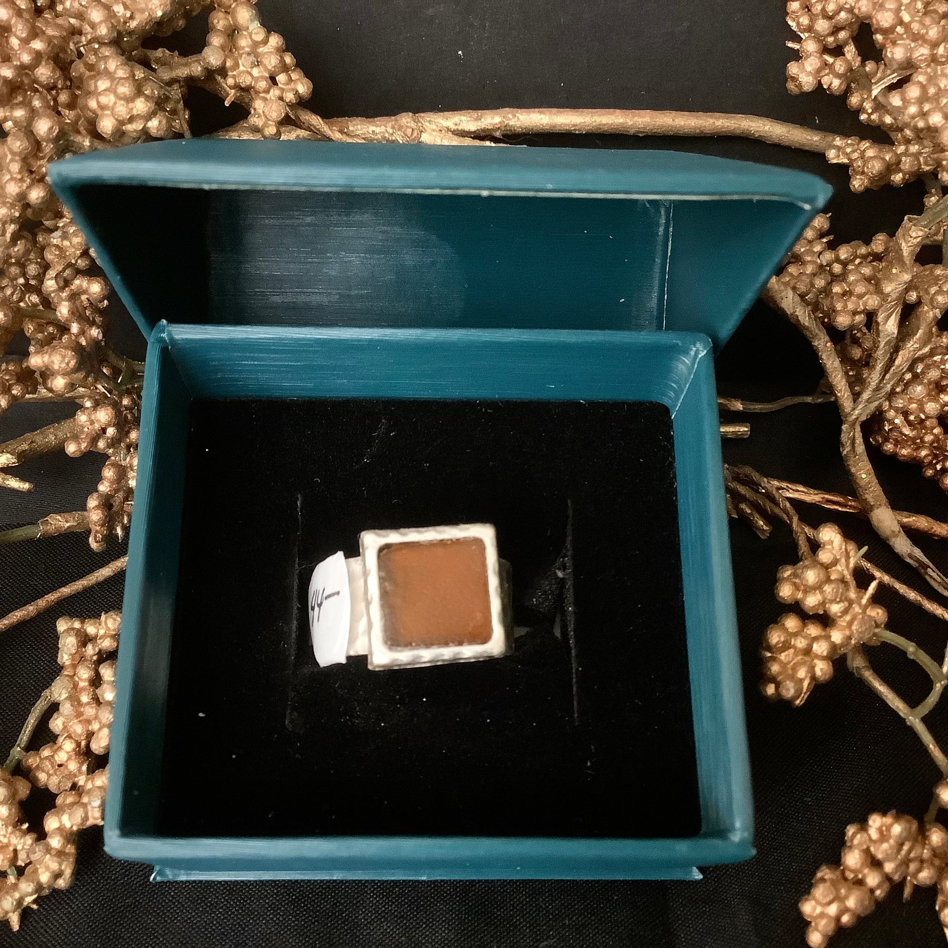 SL River Glass Amber Square Ring