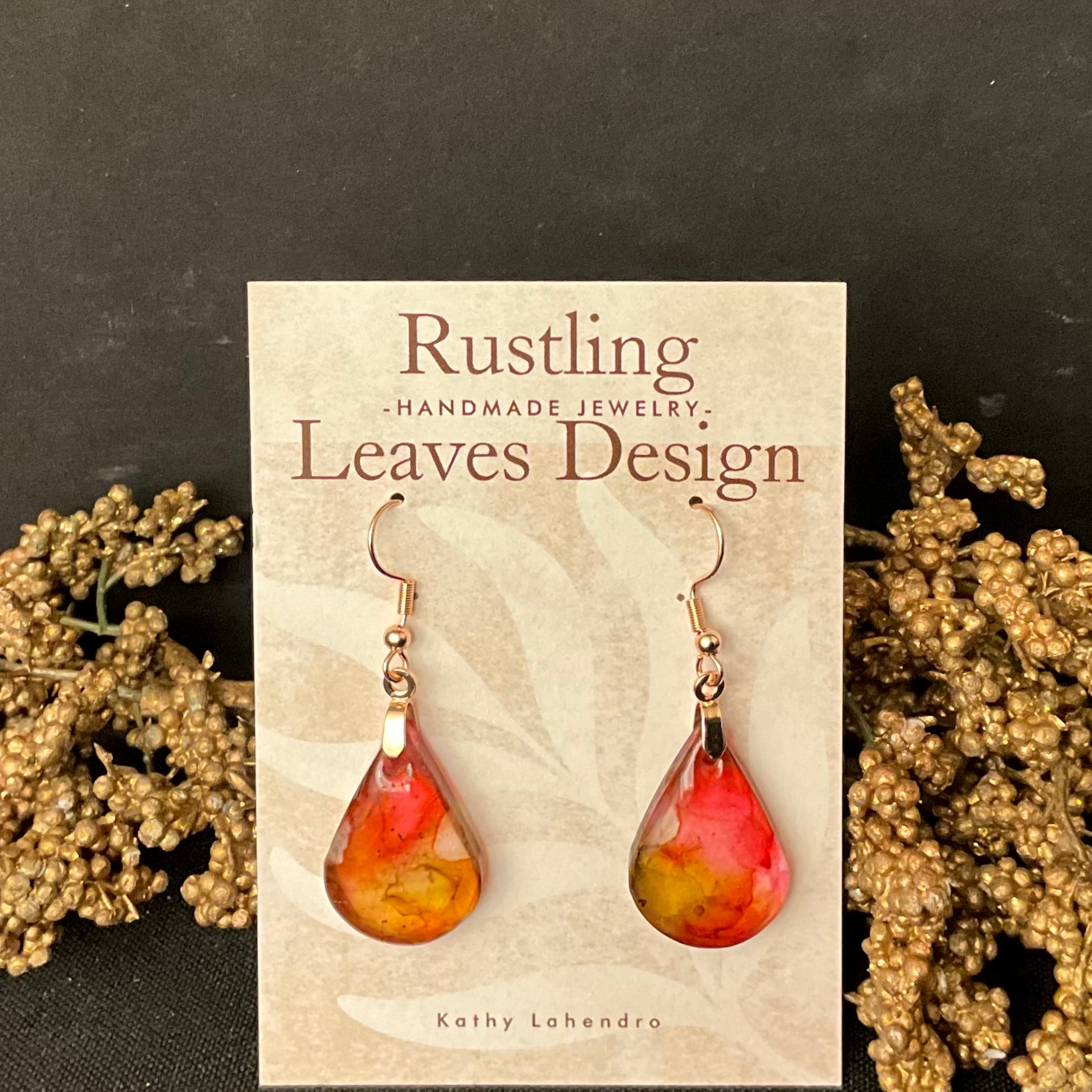 Coral Pink Resin Teardrop Earrings