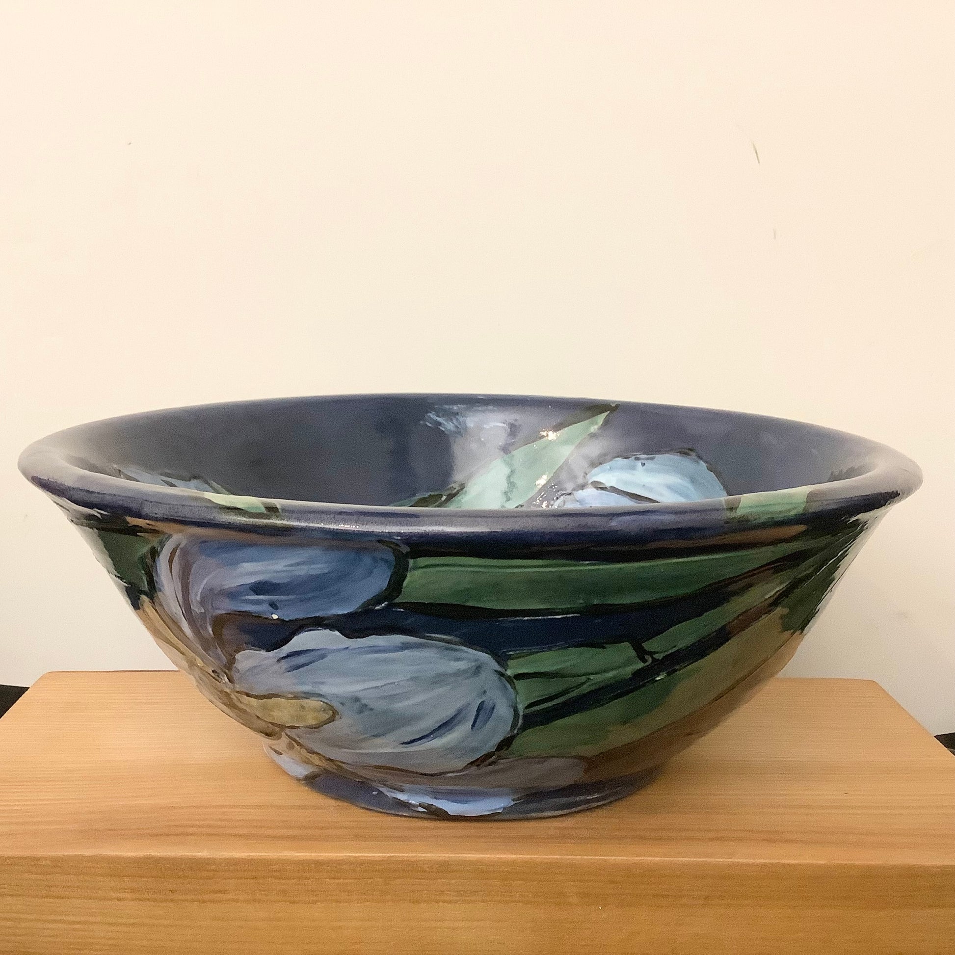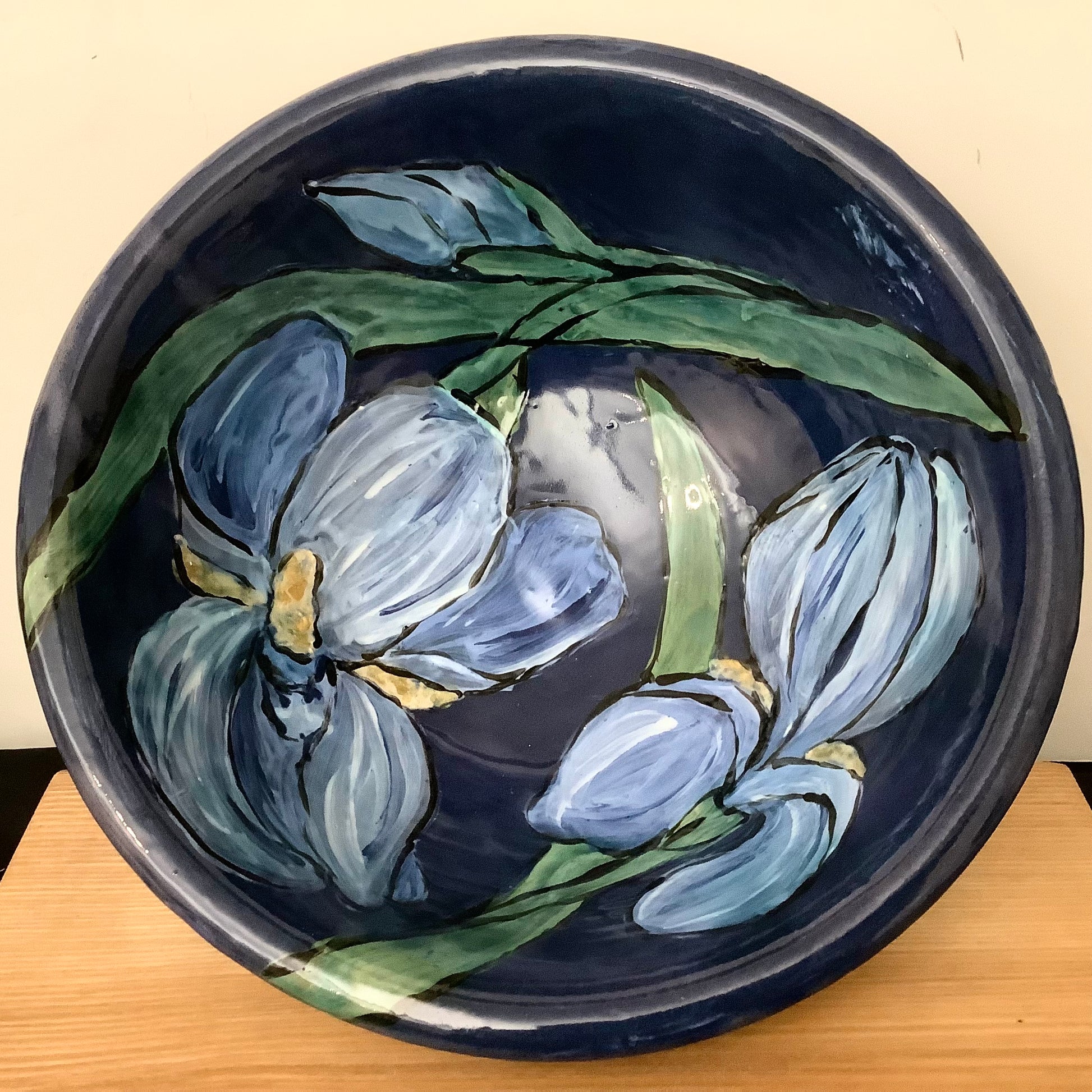 Deep Midnight Blue Bowl w Irises