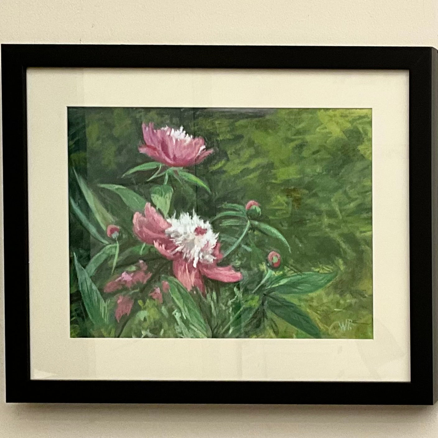 “Peonies in Bloom” Original Framed Pastel