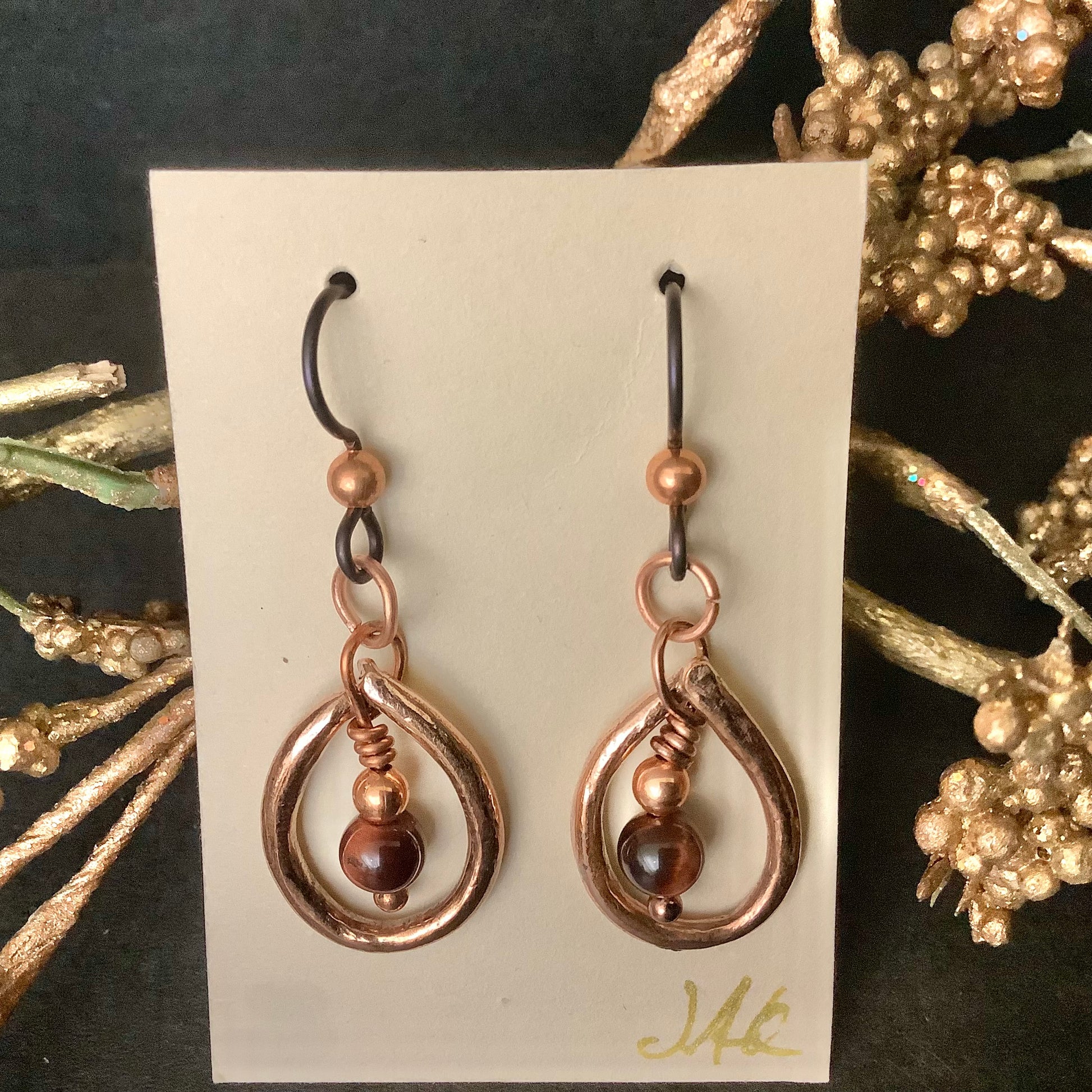 Earrings Copper Teardrop Copper Red Tiger Eye Beads #227