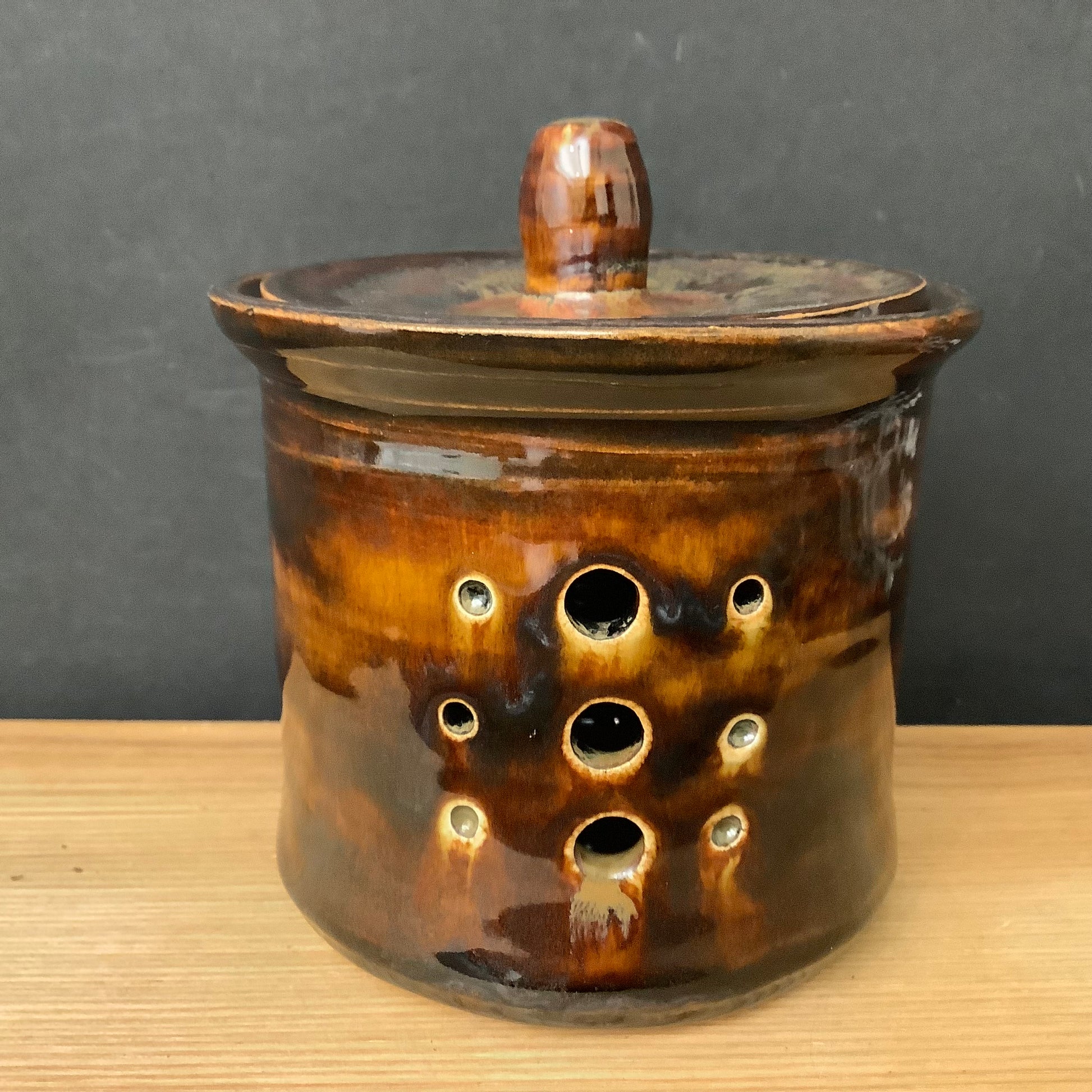 Garlic Keeper in Brown Glaze