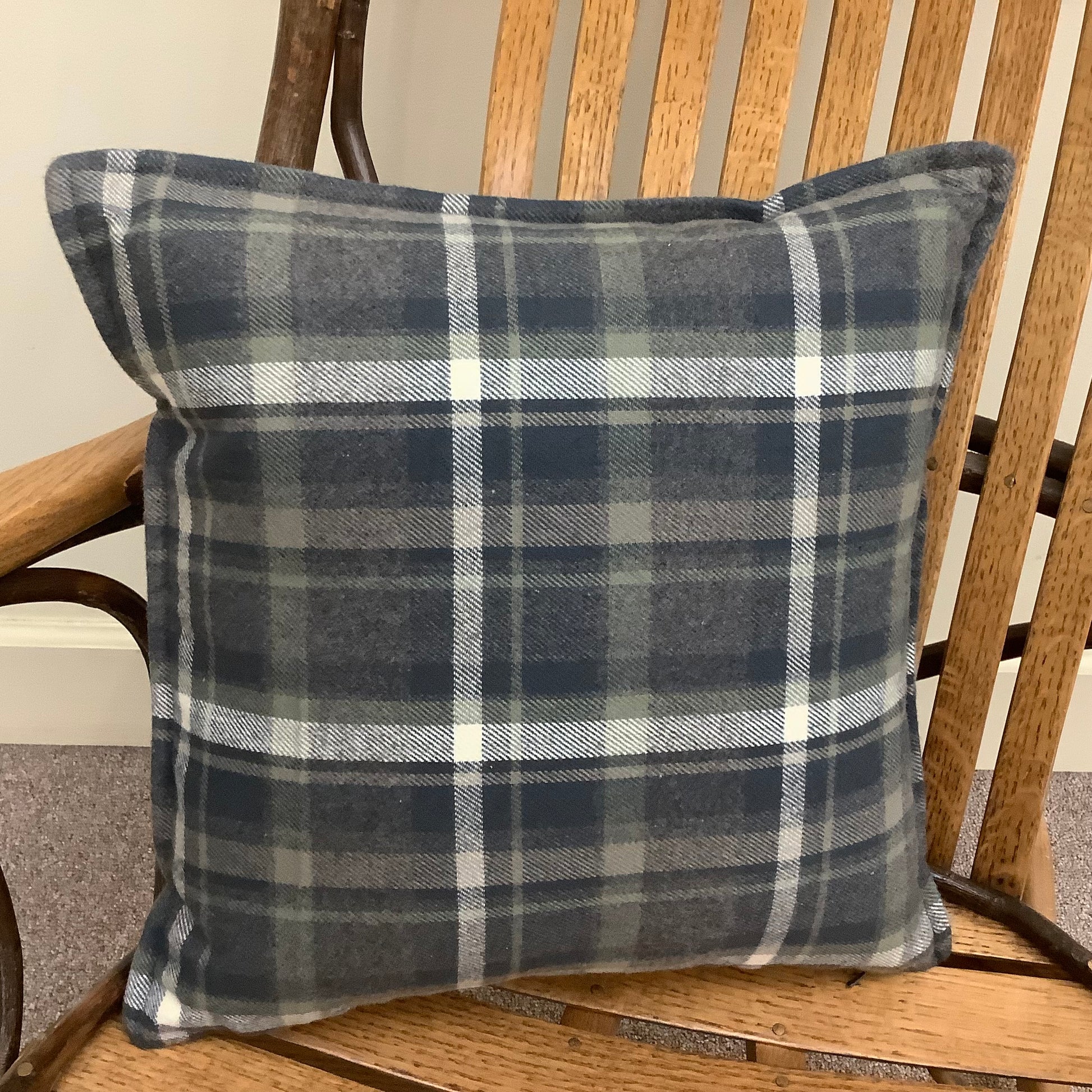 Blue, Gray, Sage Plaid Throw Pillow w Flange Edge