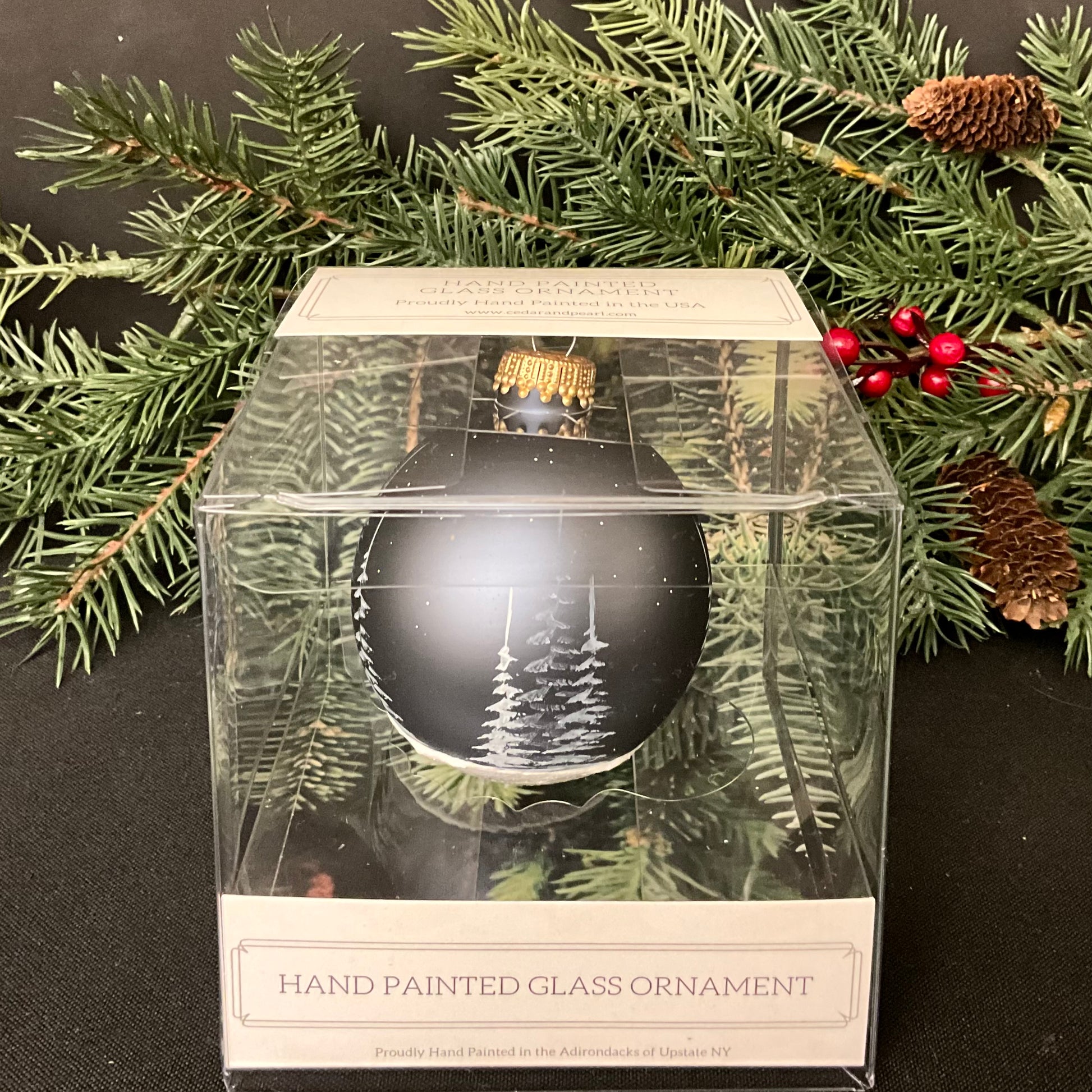 Hand Painted Glass Ornament Blue Pine Forest