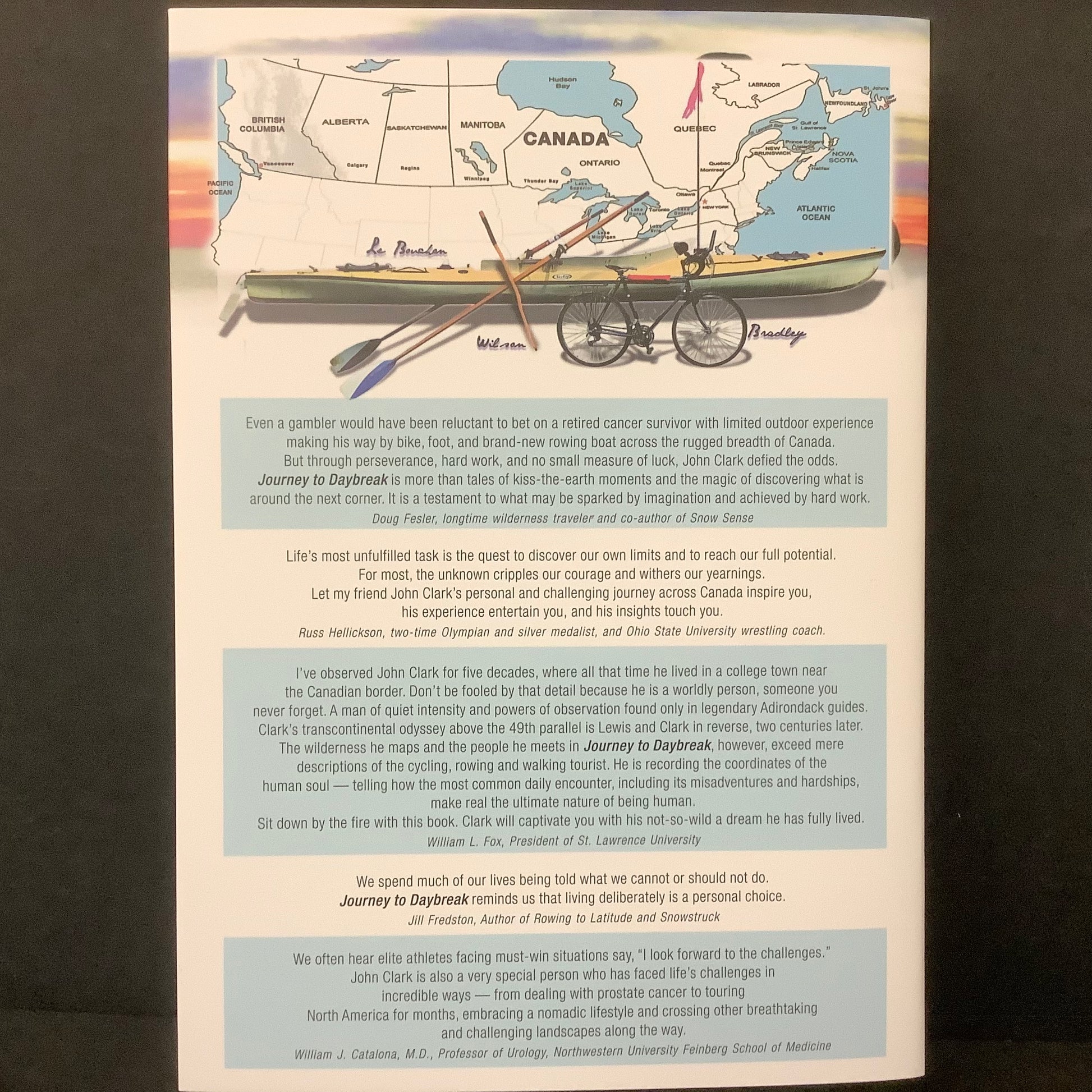 John Clark’s chronicle of crossing Canada over rugged terrain and challenging waters. Along the way, he was inspired by the wonders of the natural world and spurred on by the generosity of strangers. He writes of action-packed adventures and solitary moments of quiet reflection.