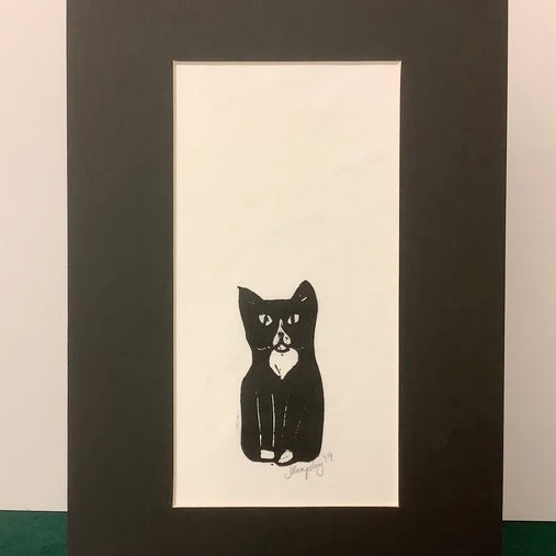 “Kitten” Rubber Block Print with Black Mat
