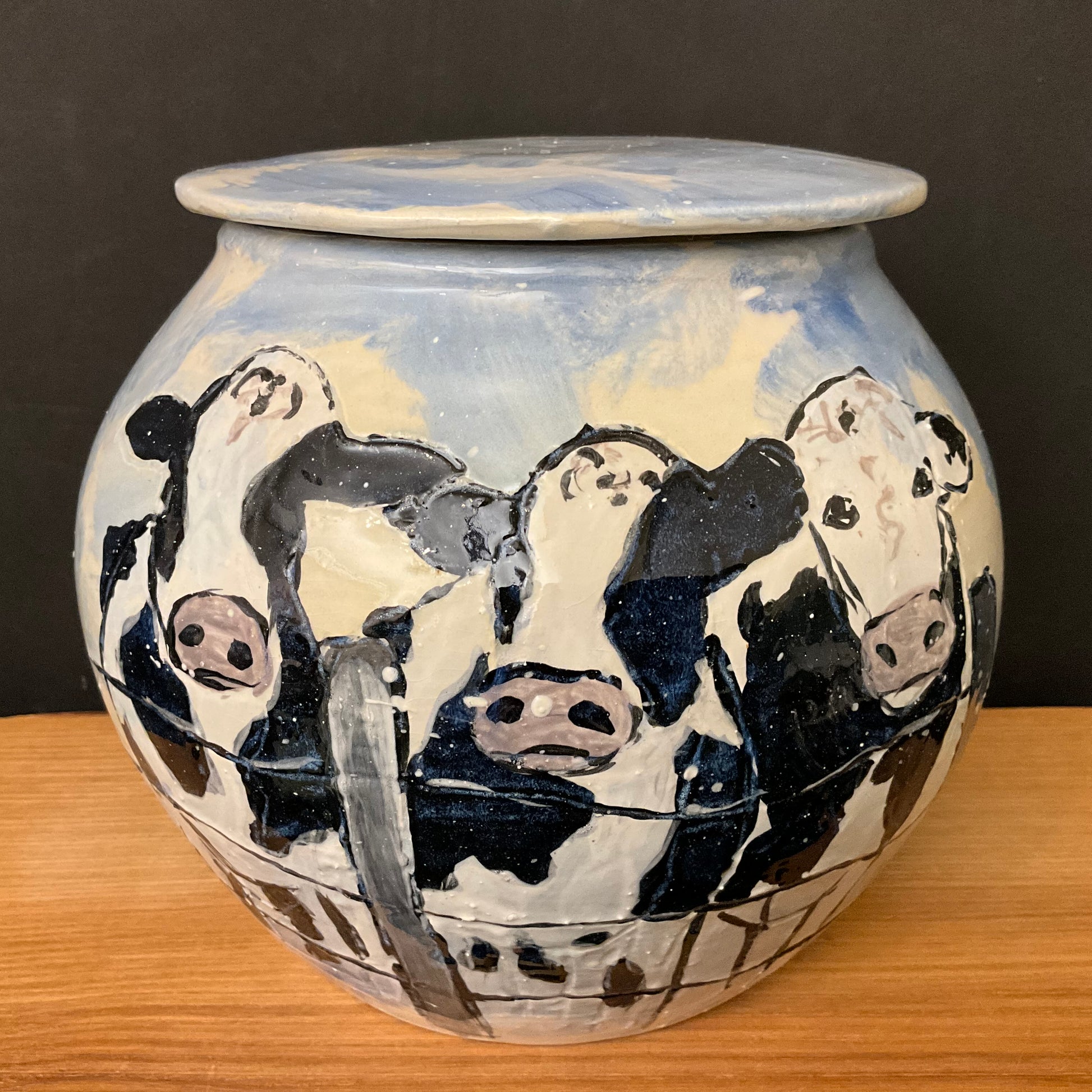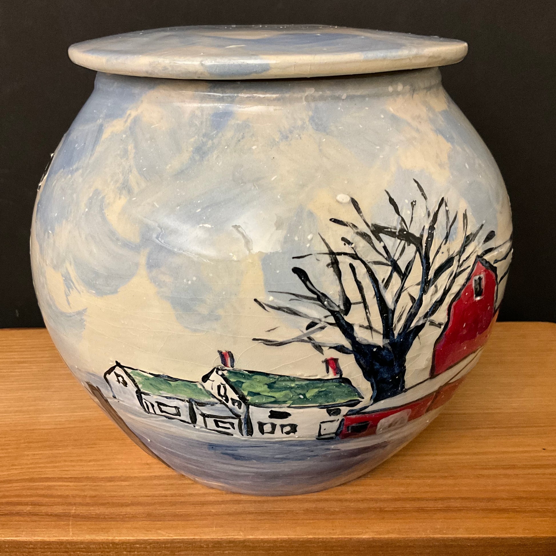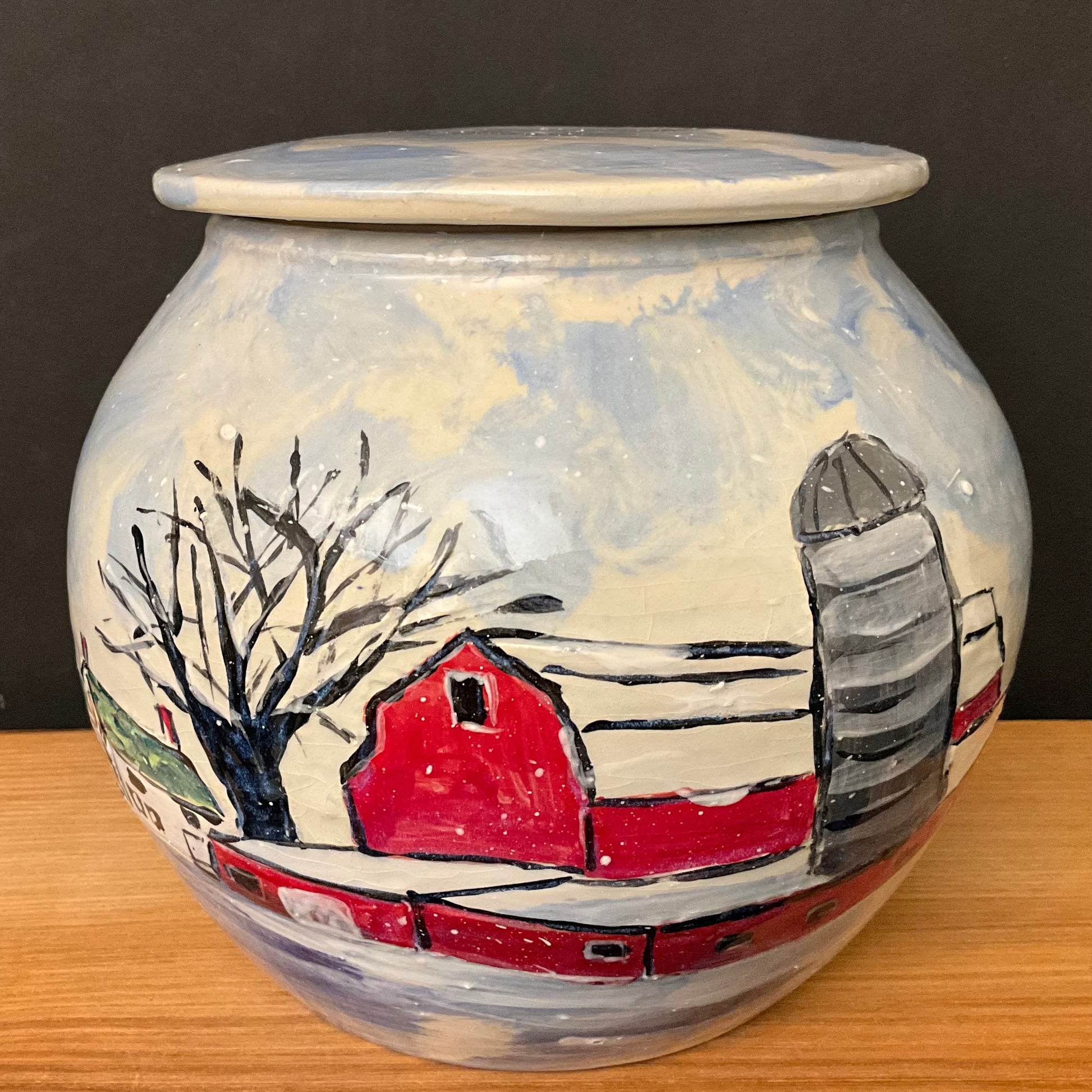 Large Lidded Jar Cows in Snow & Family Farm