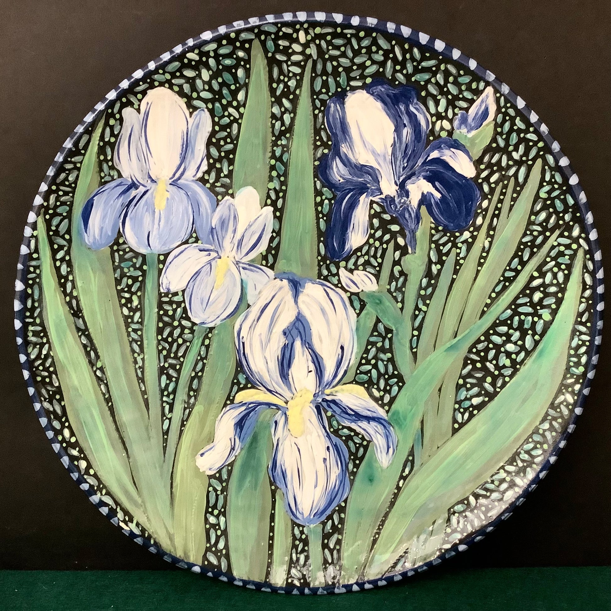 Large Round Platter with Blue Irises