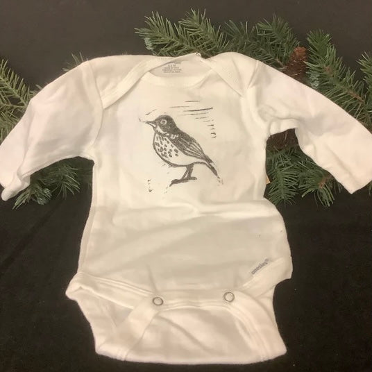 Long Sleeve Onesie “Hermit Thrush” 0-3 Month Size