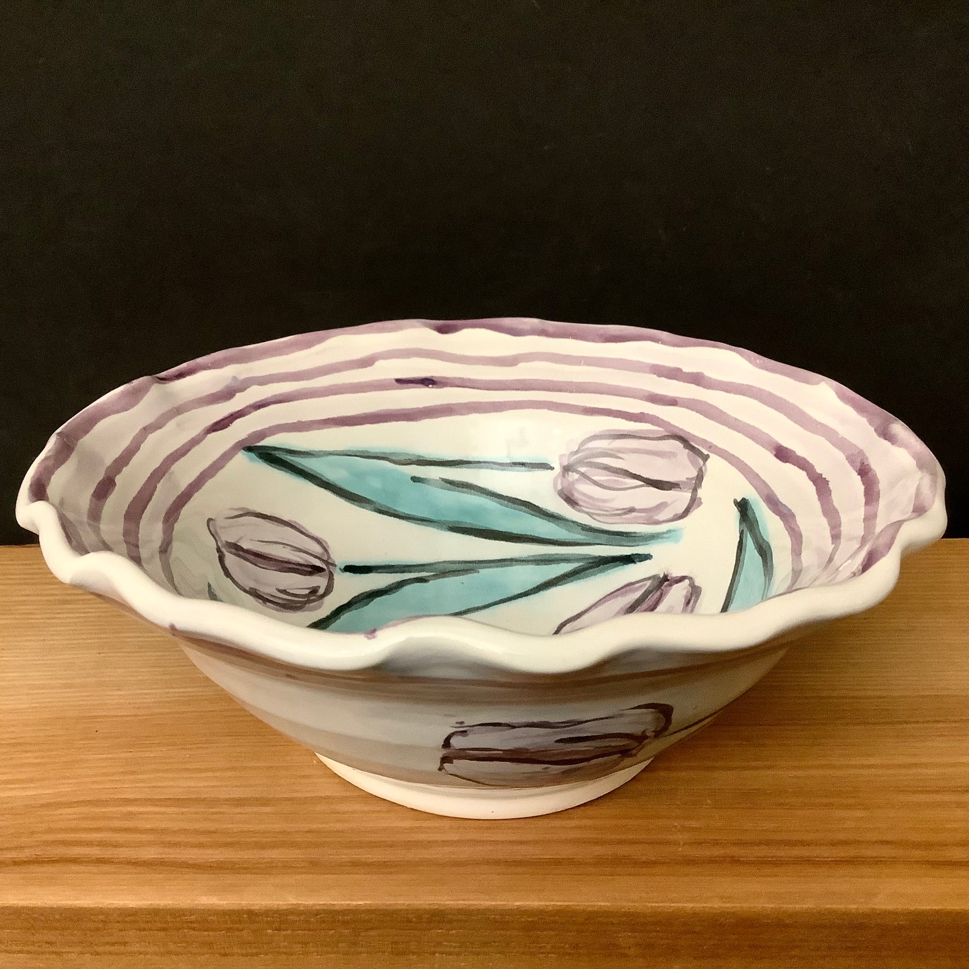 Majolica Bowl with Purple Tulips