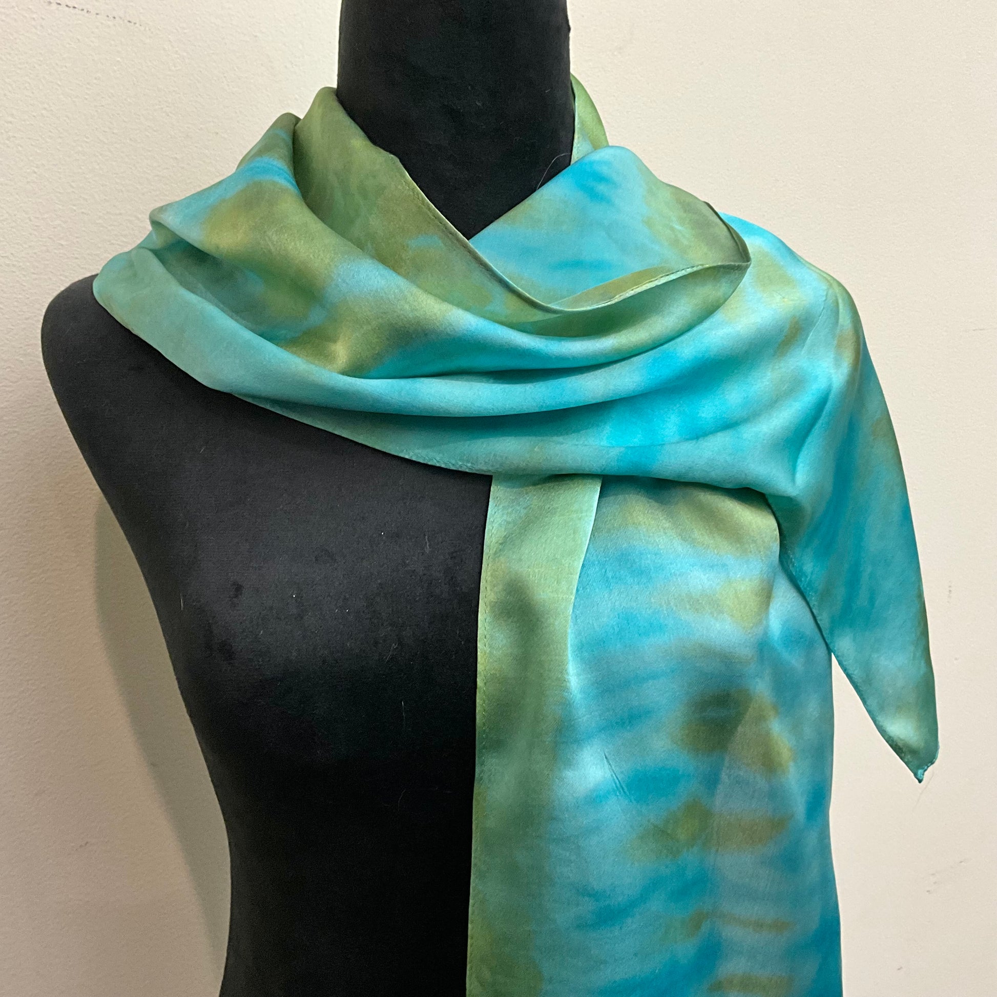 medium Ice Dyed Silk Satin Scarf - Celadon Colorway