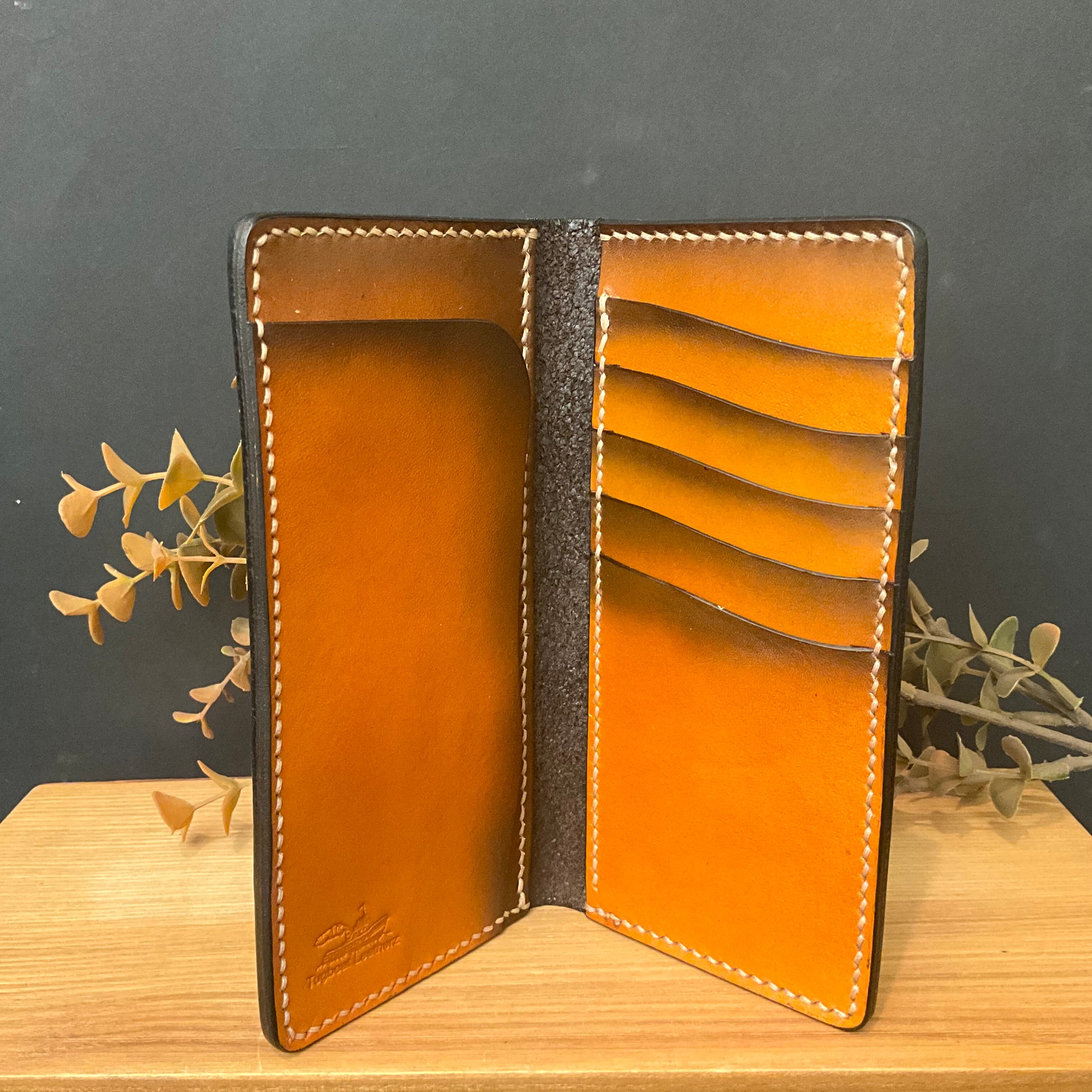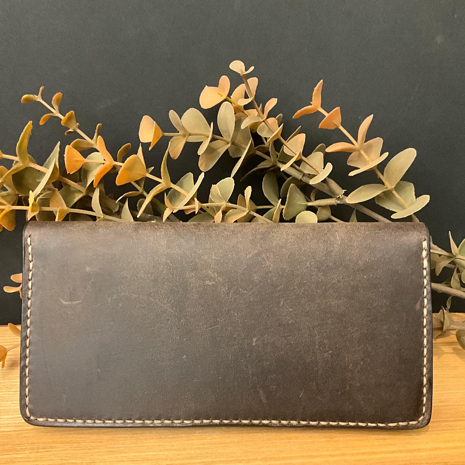 Men's Leather Long Wallet Matte Brown Orange Interior