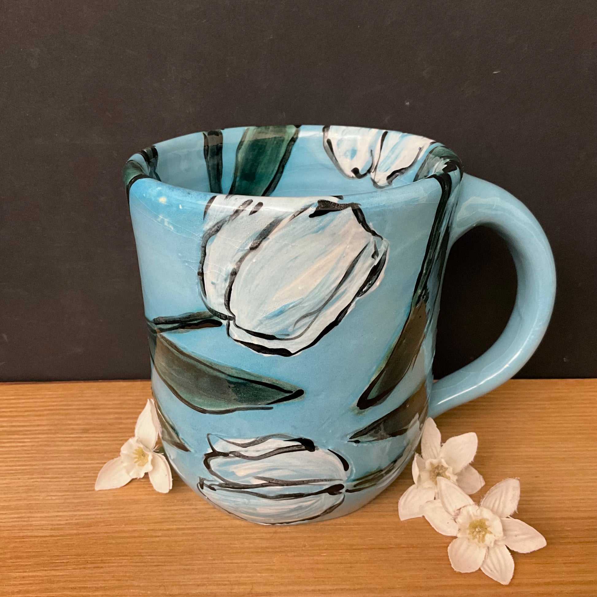 Mug Deep Aqua with White Tulips