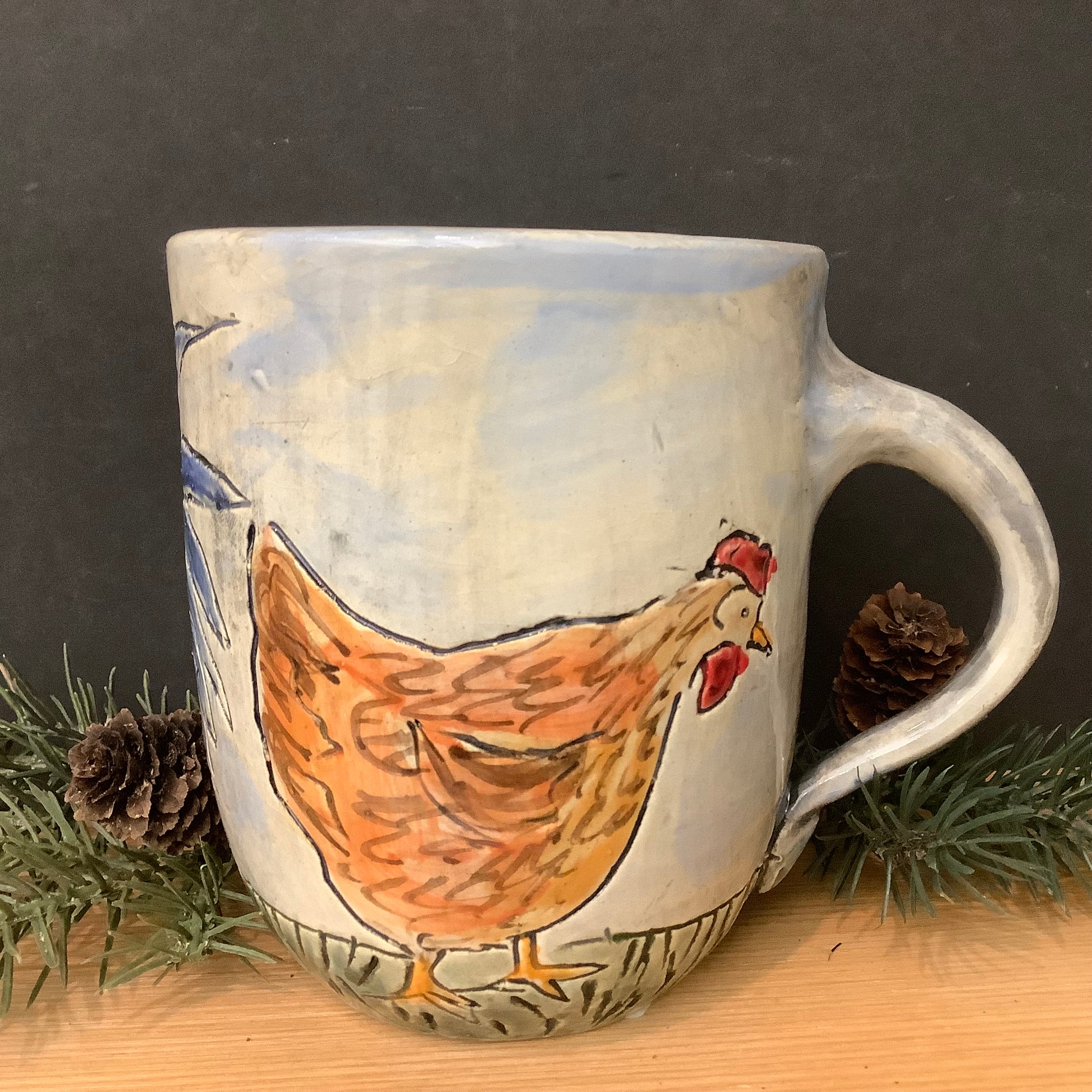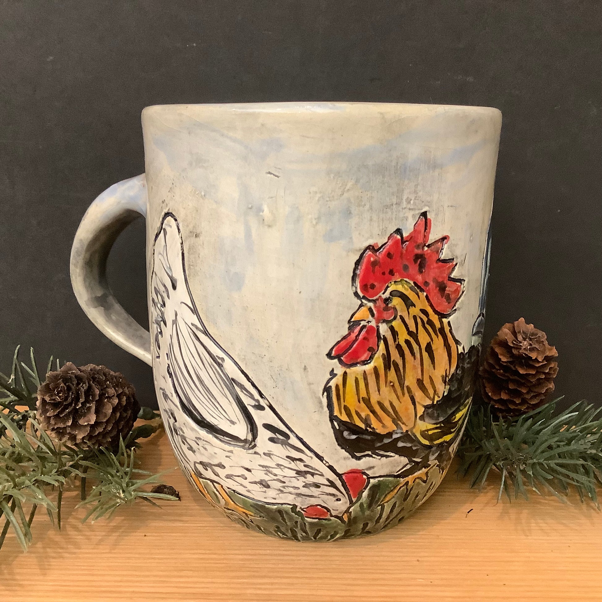 Mug with Carved Rooster & Hens