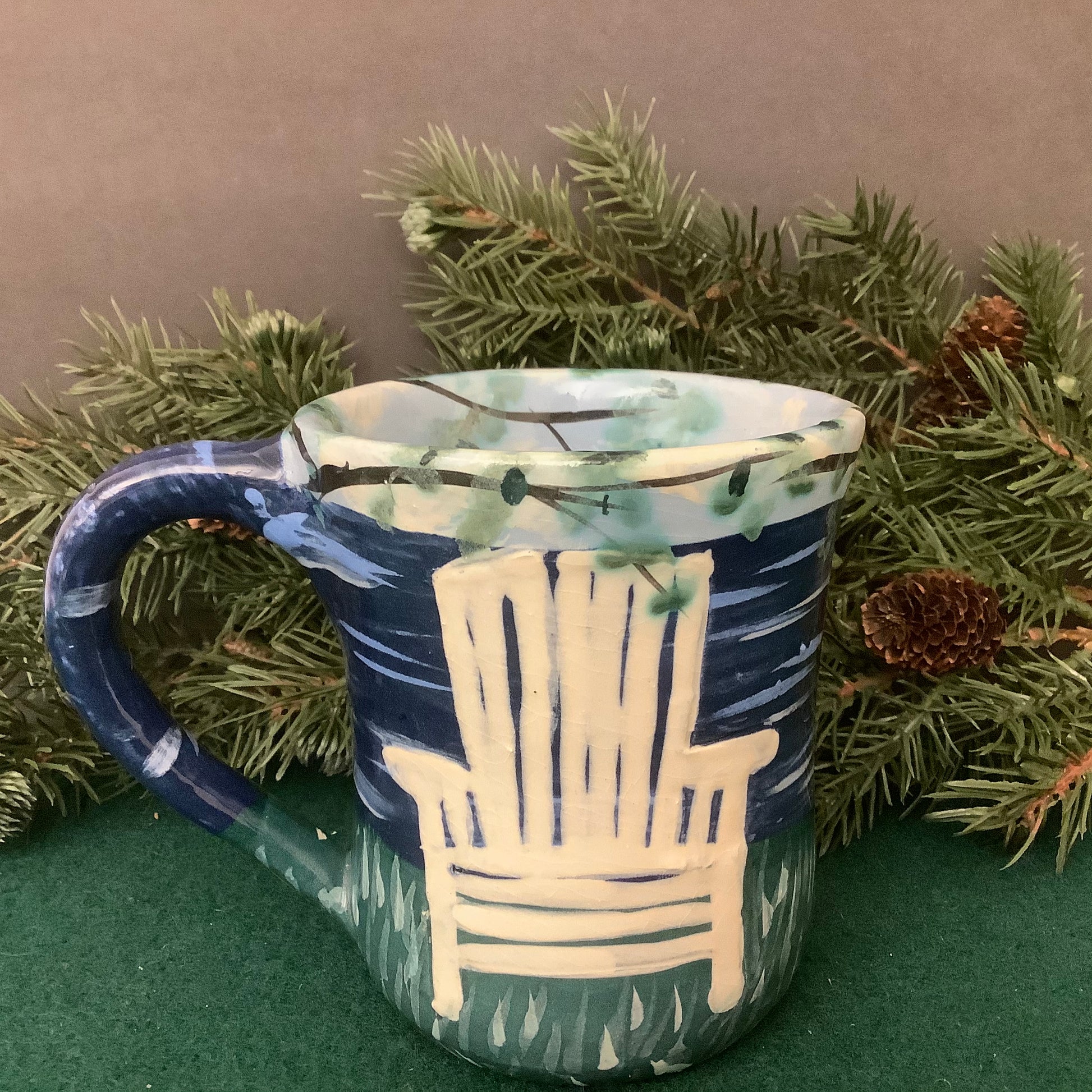 Mug with White Adirondack Chair, Water & Branches