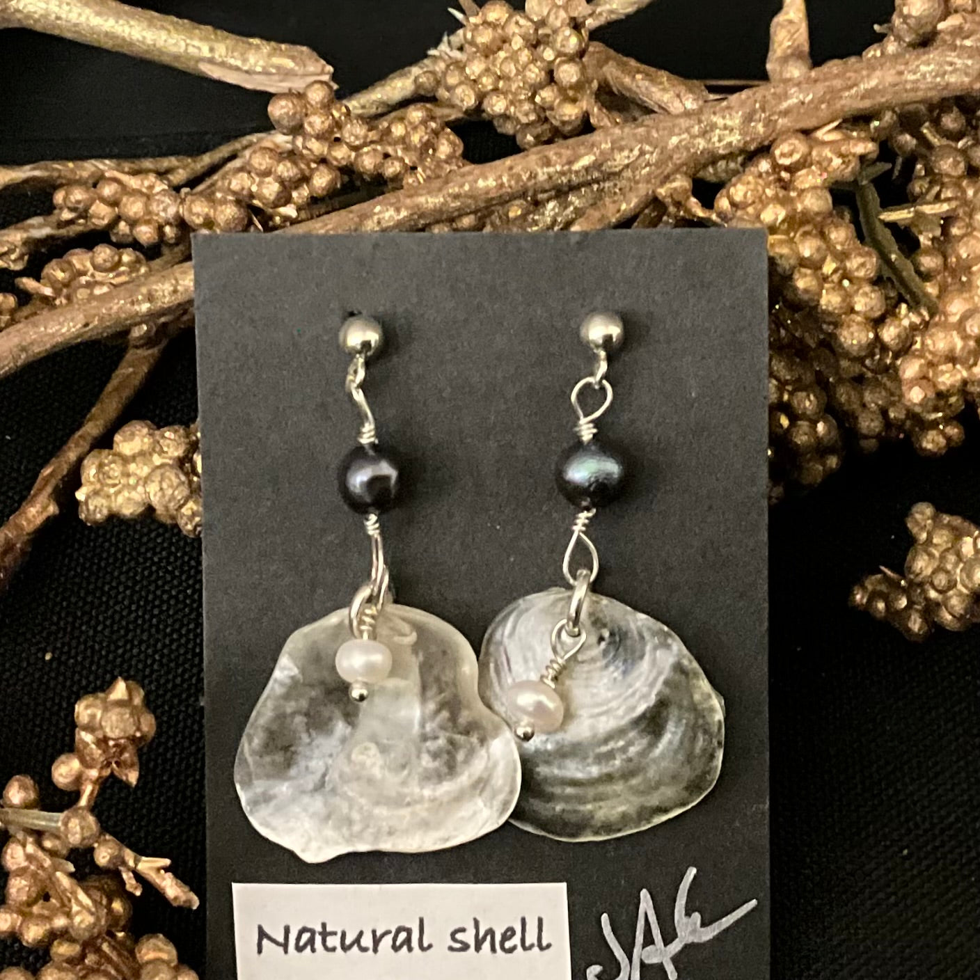 Natural Shell Earrings with Peacock Pearl Bead #277