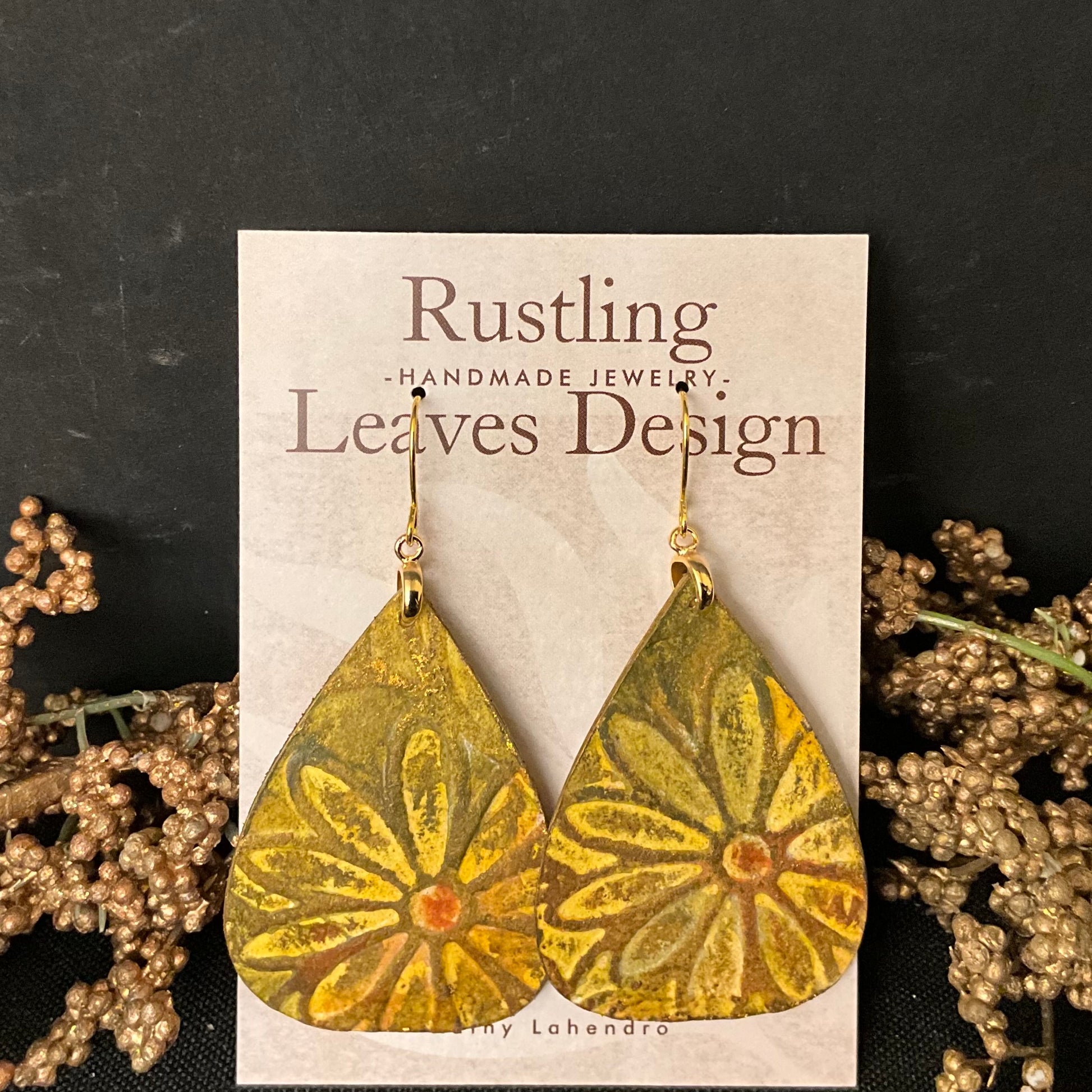 Olive & Mustard Embossed Vintage Daisies Earrings
