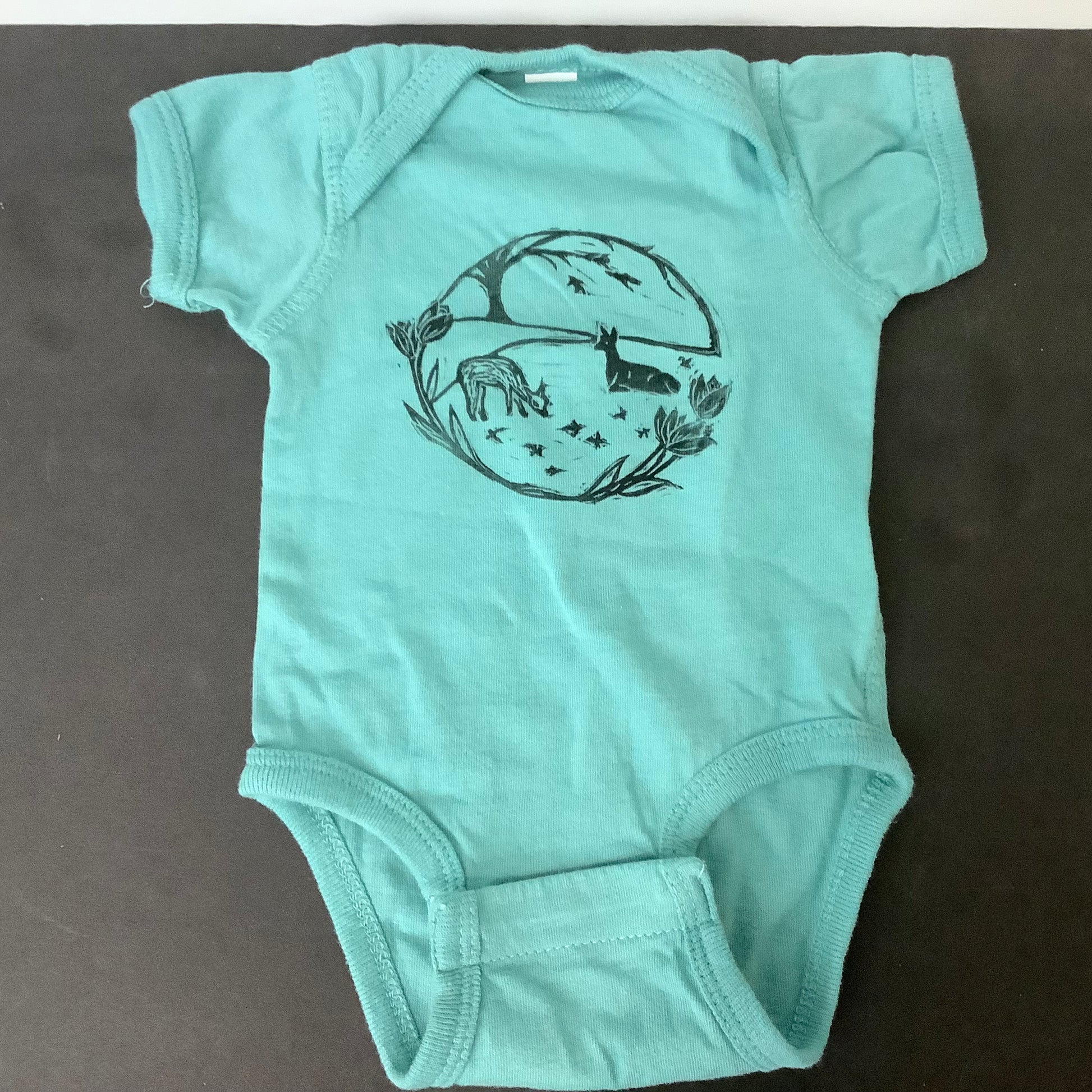 Onesie “Alpaca Meadow” Teal Newborn Size