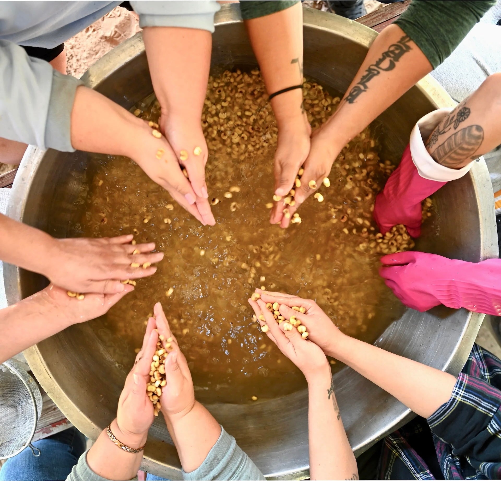 Pink Gloves Washing White Corn, Framed Digital Photograph, Giclee Print