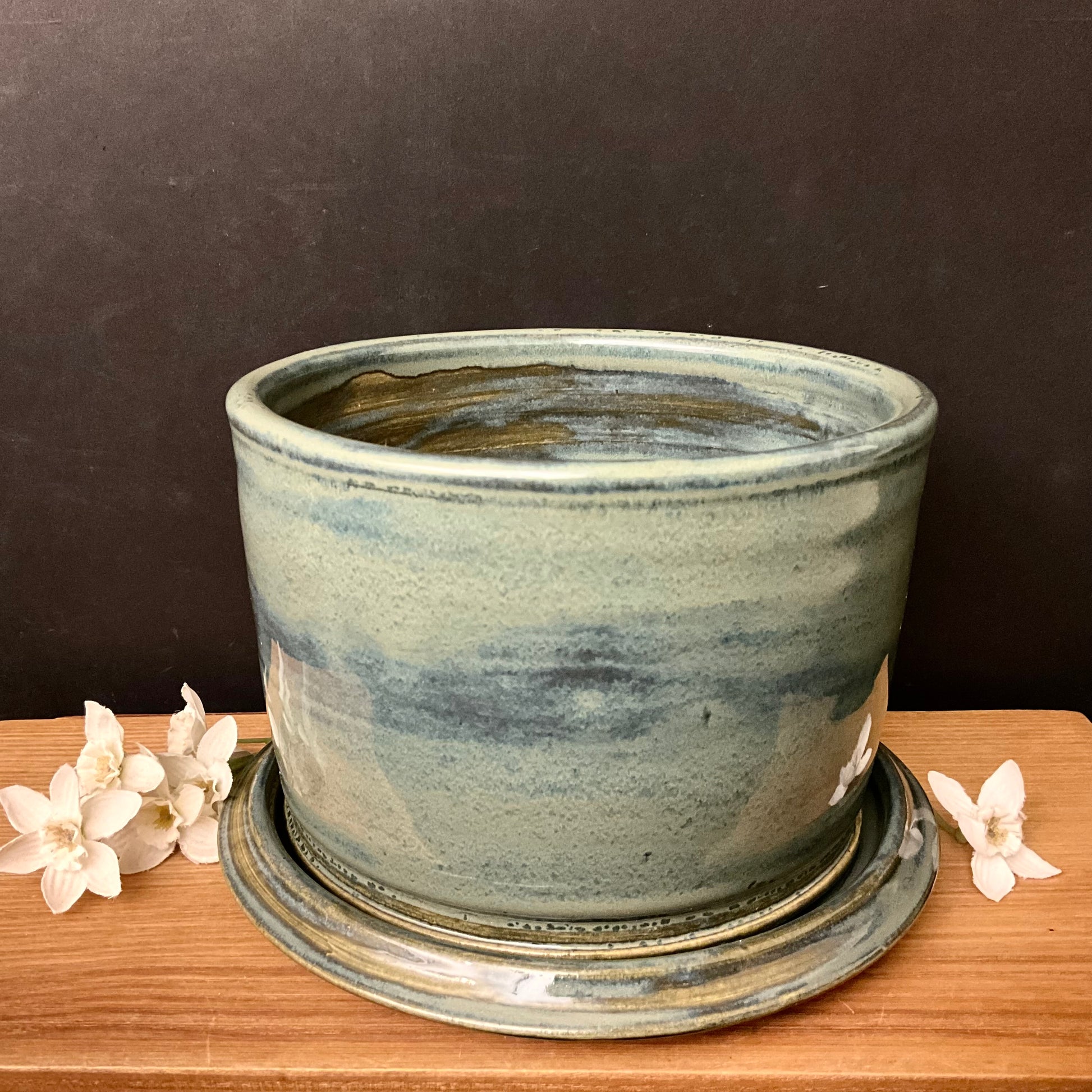Planter with Saucer in dusty Sage Green - Joanne Arvisais