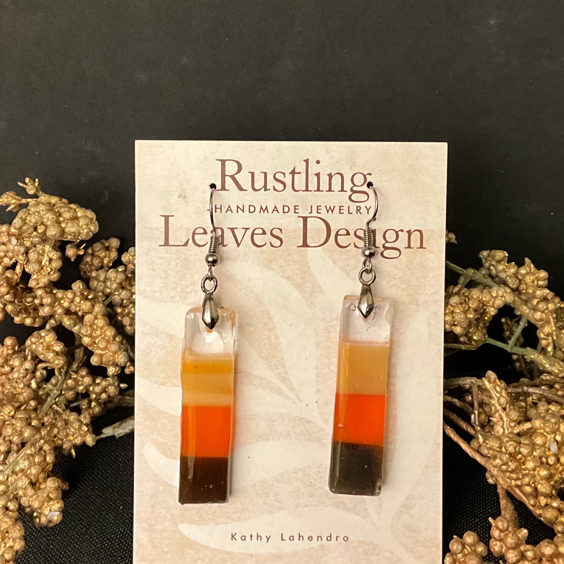 Rectangle Earrings in Glass & Resin - brown, orange & yellow