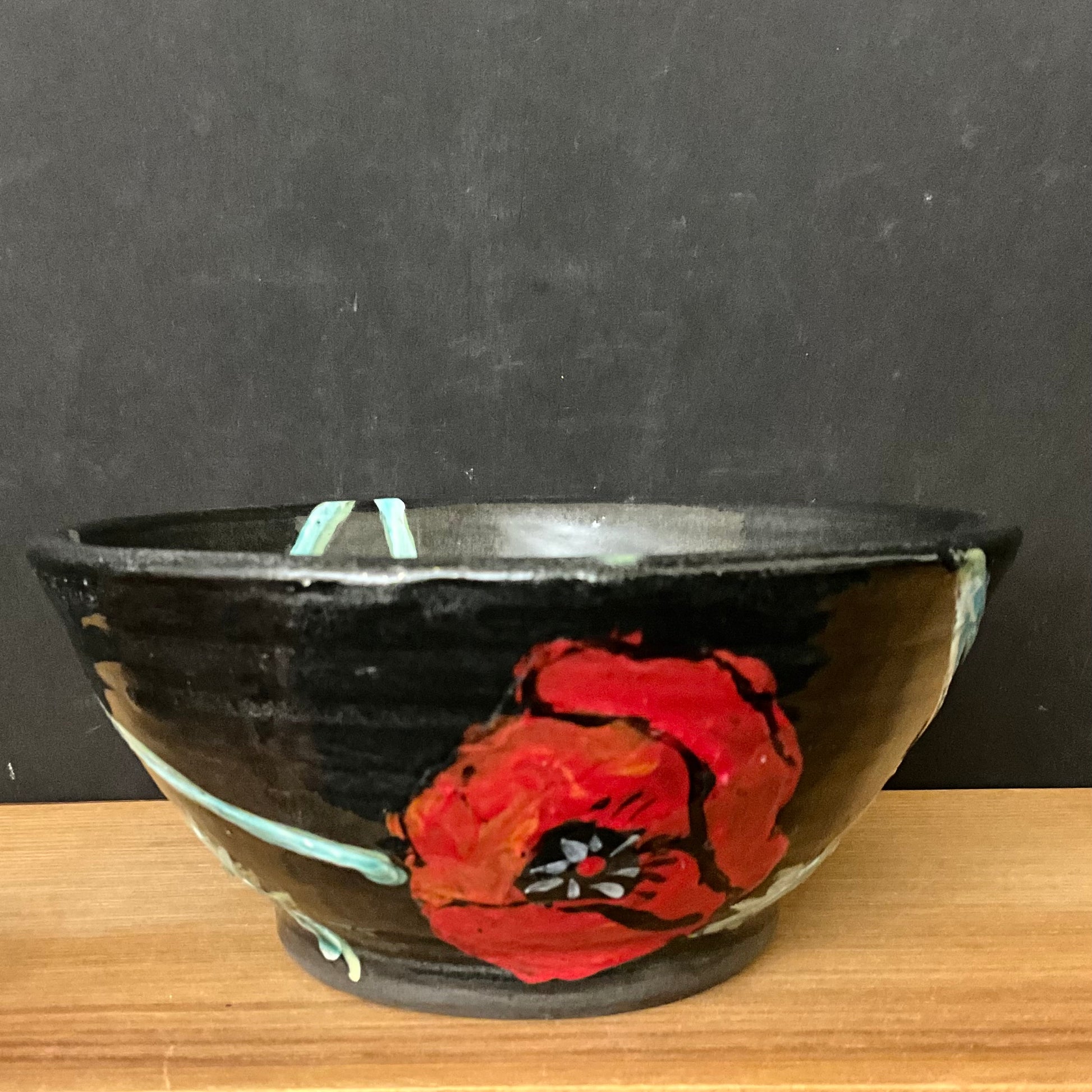 Small Black Bowl with Red Poppies