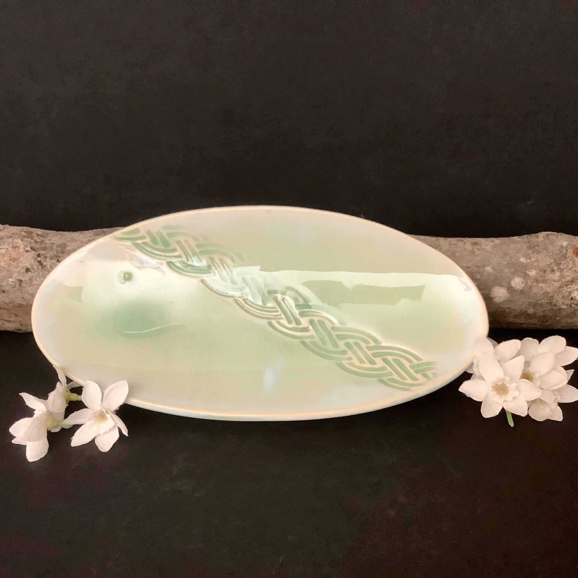 Spoon Rest Celtic Braid Pale Green Glaze