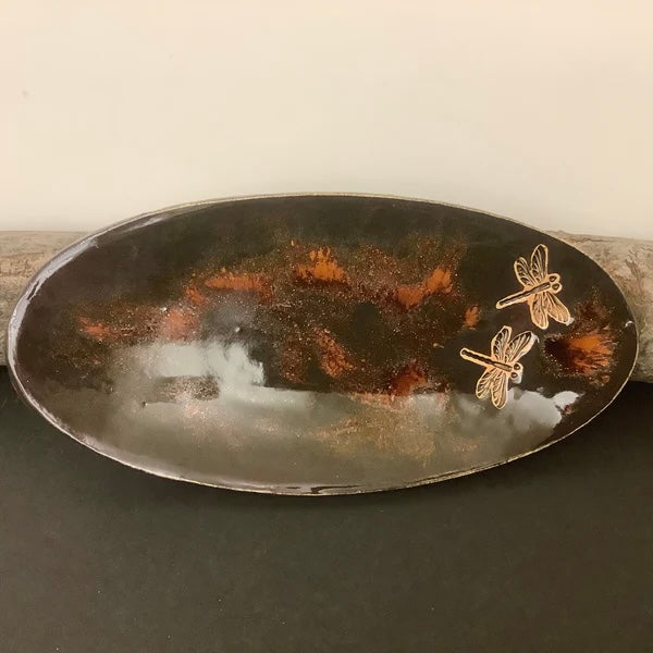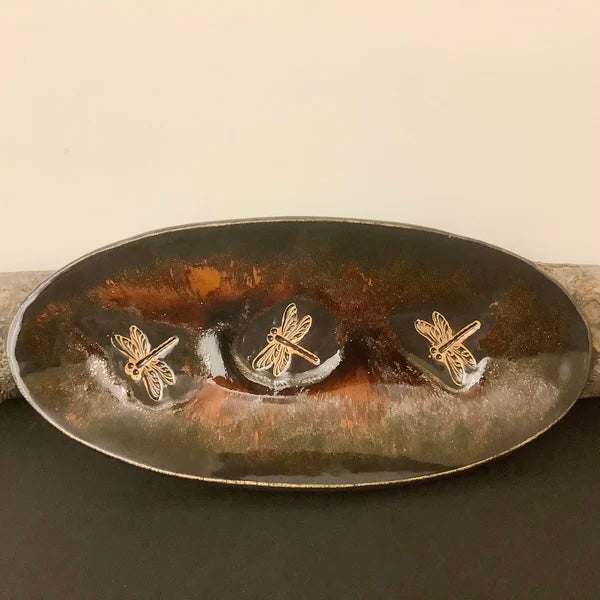Spoon Rest Dragonflies with Dark Brown “Iridescent””Glaze