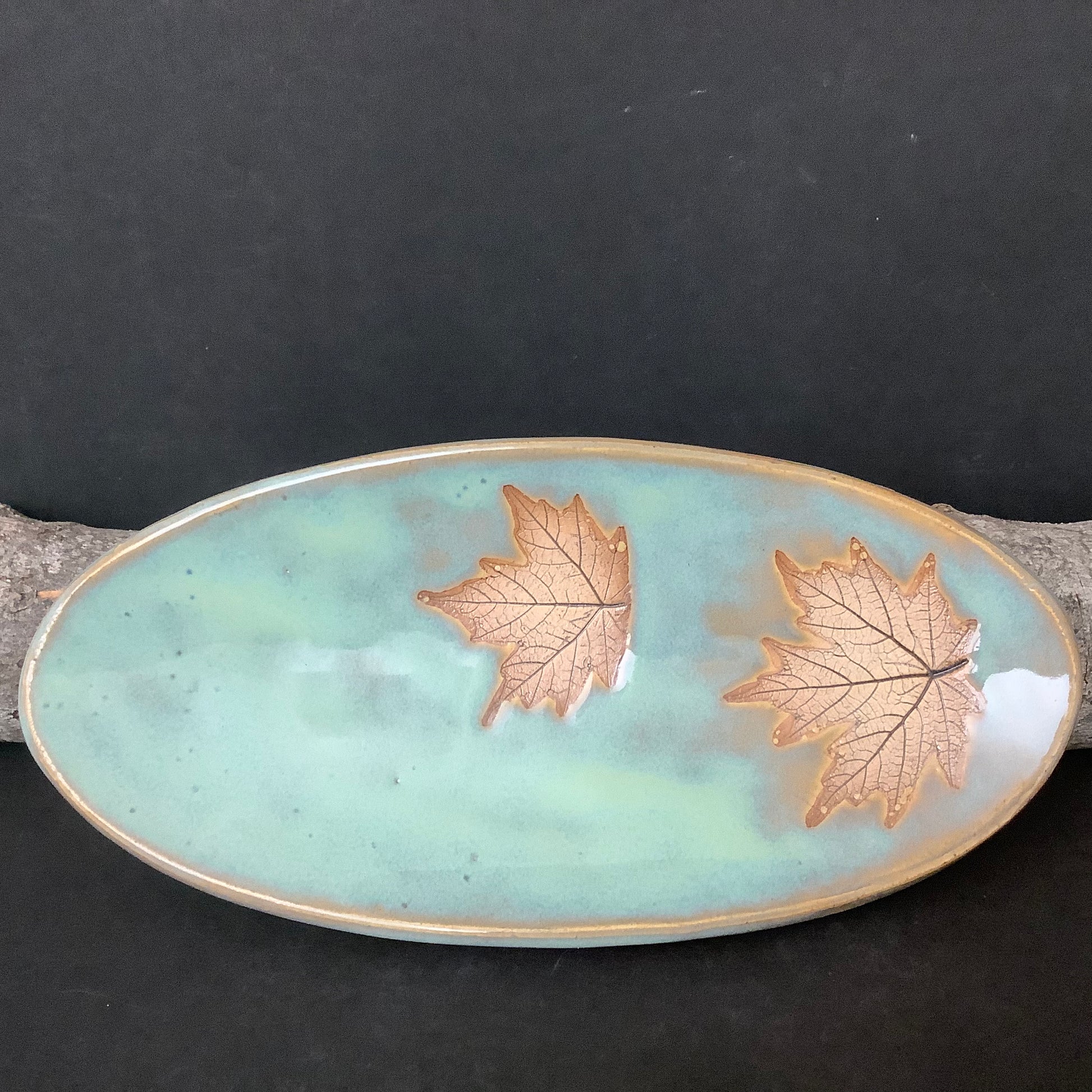Spoon Rest Maple Leaf Design with Turquoise Glaze