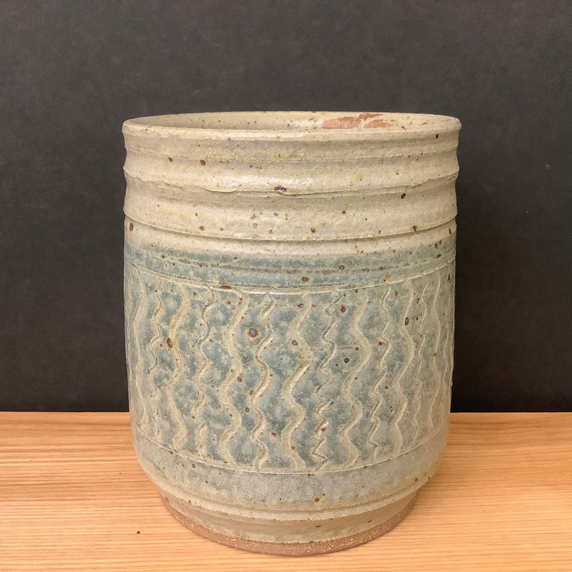 Stoneware Crock Celadon Ash Glaze with Sgraffito