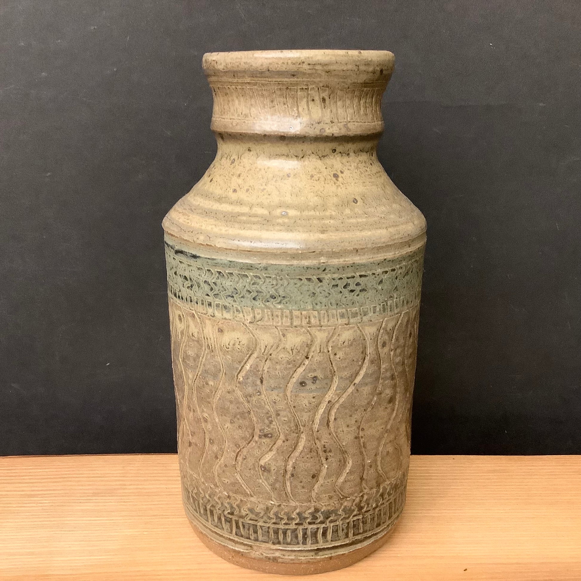 Stoneware vase Brown/green Carved