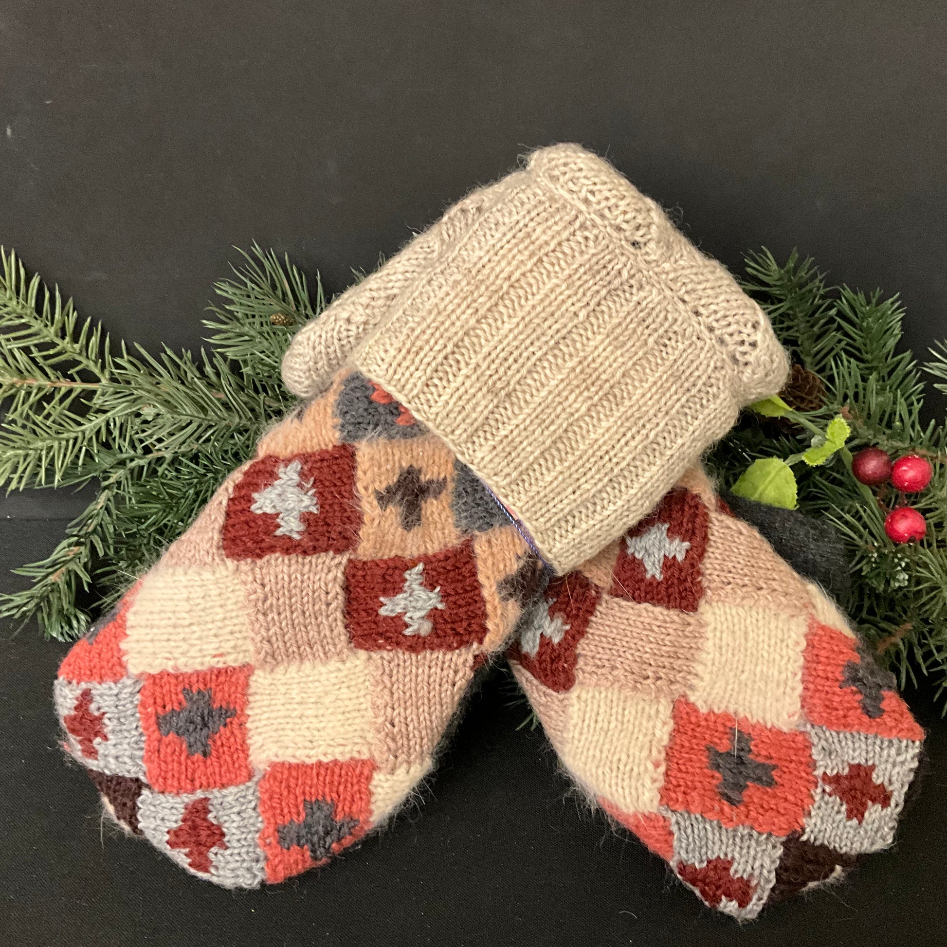 “Upcycled" Sweater Mittens w Chunky Multi-Color Weave Pattern