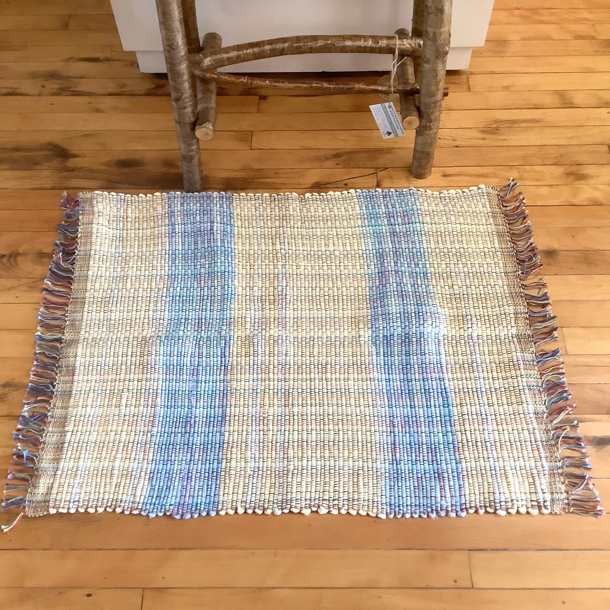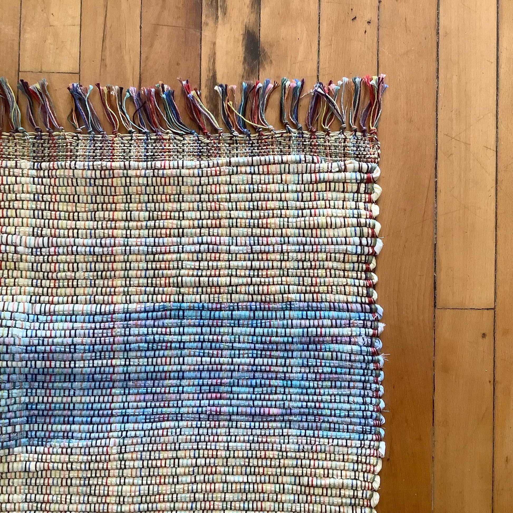 “Upcycled" Woven Rug in Pale Yellow & Blue